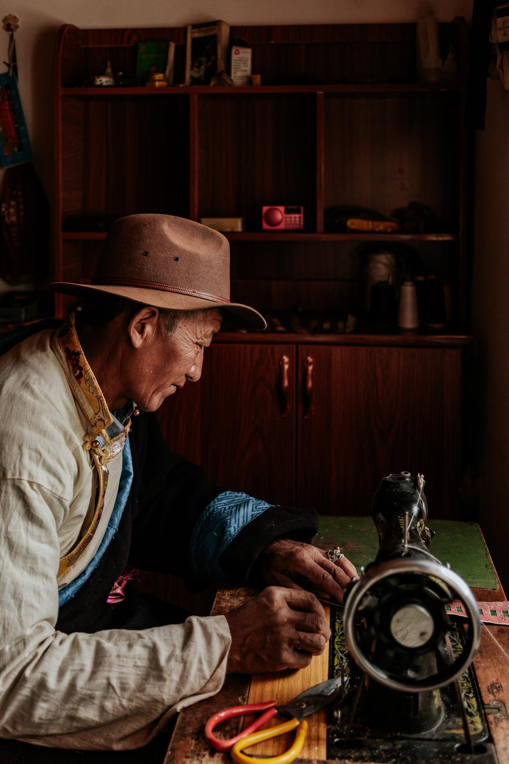 在探索朗县的非遗文化中,我们也有幸亲身体验了朗镇马包制作技艺。马包是一种传统的皮质包袋,从很久以前就在朗县朗镇曲江一带非常盛行。它以前是用于生产生活中的实用皮包,用来装食品和衣物等各种东西,后来随着人们对美的认识和追求,手工艺人在制作马包时将各种已经上色的皮子或兽脚缝制到马包上用来装饰,逐渐发展为一种具有独特审美观的艺术品。朗镇马包的制作材料主要来自羚羊、獐子和牦牛的皮子,而制作时间则一般在夏季的7至8月份进行。