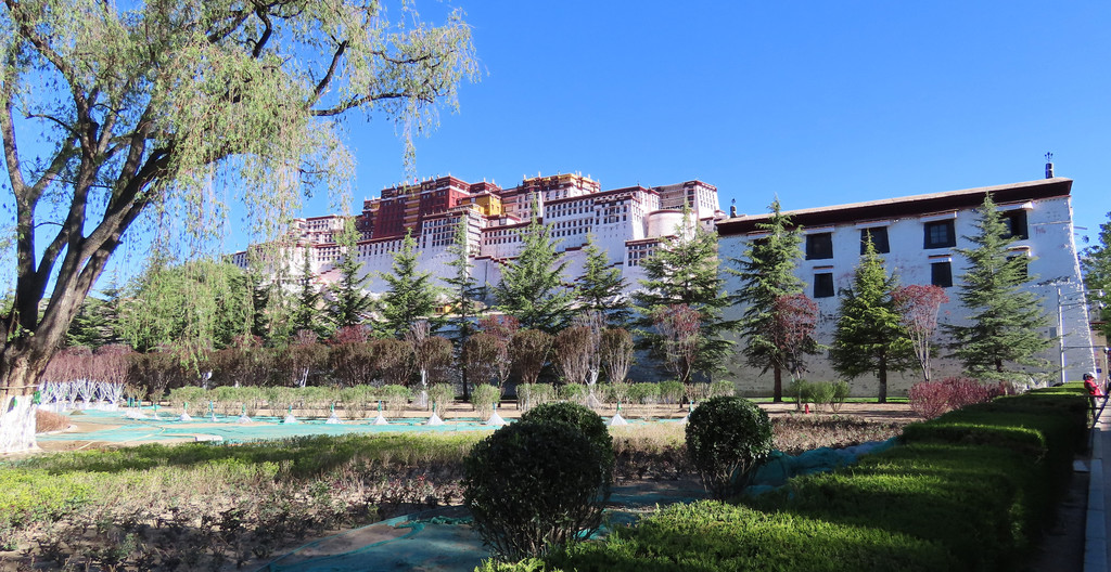 第六天,迎着初升的太阳上尼洋河风景区。咋儿晚住的酒店就在尼洋河岸边,河水哗哗的已经听了一宿。一路沿河行驶不断为尼洋河谷的美景惊叹。这里天蓝地爽植物茂盛河清水绿瑞鸟飞翔,这里姹紫嫣红色彩缤纷,这里是丹青的世界色彩的王国。河床里时而乱石处处激流滚滚白浪滔滔,时尔浅滩细流草丰叶茂河水潺潺金光闪闪;这边小鸟拨浪戏水,那边大鸟掠空翱翔;两岸的树木披着各式洒满金色阳光色彩缤纷的树冠,或聚拢成群各自成片大声舞蹈热烈歌唱,或单身独影轻歌曼舞自赏独芳,树木是飞鸟们的乐园。河中的水草也不甘寂寞,它们大多喜欢群舞,高挑的水草努力摇摆身姿攀比着谁的腰身扭动更多那个阵容舞蹈动作更齐、队列的颜色深线变化更加协调悦眼;而矮小的水草或携手并肩轻歌曼舞或振奋而起波浪滚滚,水草是游鸟儿们的家园。湿地上还搭建了很多木桥栈道穿梭蜿蜒供人游玩,可惜我们只能在高处远眺不能亲临,这大概就是跟团游的遗憾吧。来时的路上经过了笨日神山,它是藏区的四大神山之一,也是转经的圣地,不同的是转经的方向是反向的。传说第九世生根活佛立志挽救日渐衰弱的本教耗尽毕生心血,身后化做一百只雄鹰护佑笨日山,渐渐的每年四月三十日演化成苍鹰节;信徒们逆向转山则是因为莲花大师为逞强与活佛大师在此斗法、屡屡失败,而今尼洋河谷遗留的大石崇拜、神鸟崇拜和山上的天梯、神鸟及逆时针转山等等都是那以后留下的习俗。别说,还真遇上个转山的,浑身护具地上補着毛毡,身后一二百米外还有俩个人和越野车伺候,条件真是太好了。