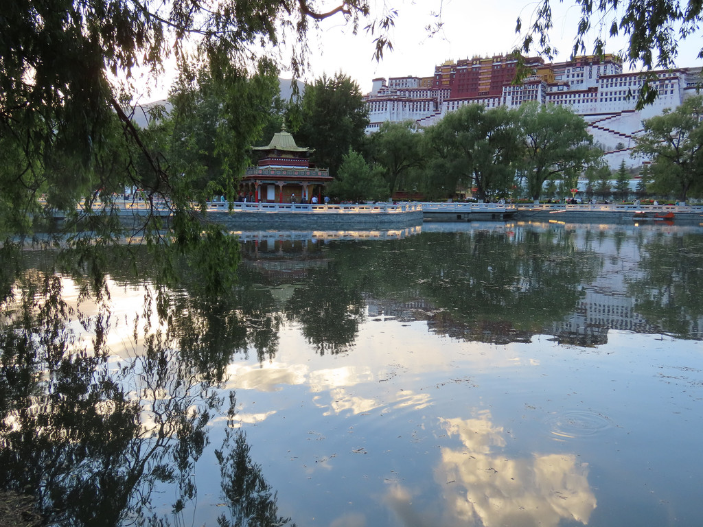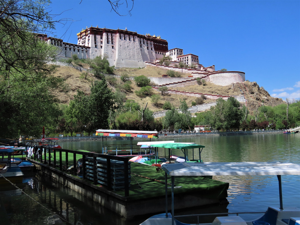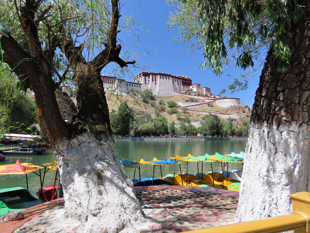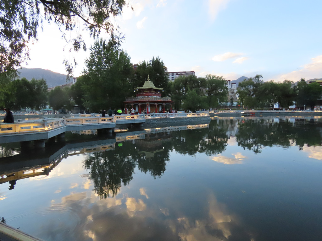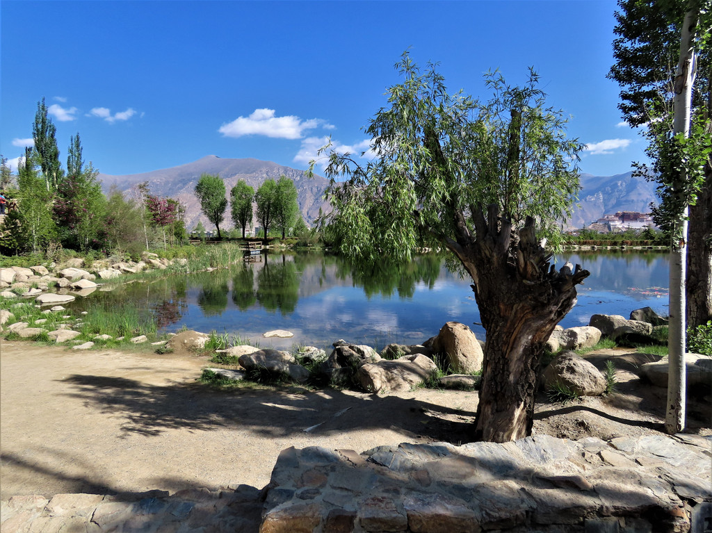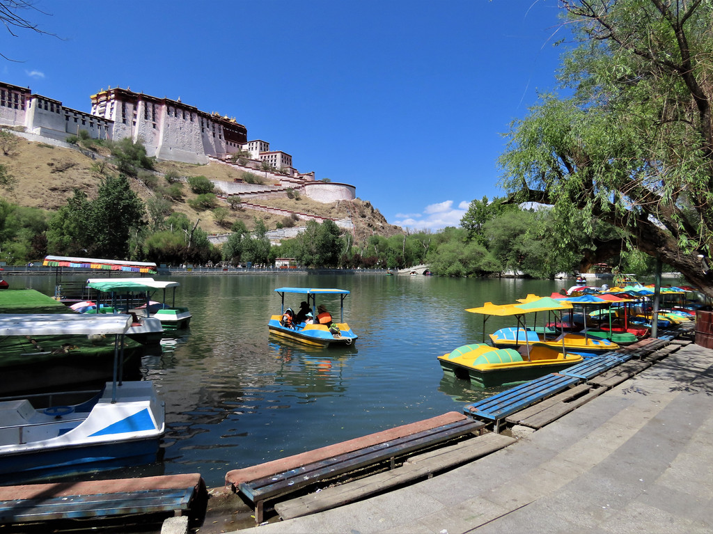 宗角禄康公园很不错就在布达拉宫后面,那儿是当地藏民们游乐休闲的场所,里面湖水清澈游船荡漾绿树成荫花儿朵朵非常漂亮。顺着林荫路捋着湖边看着休闲漫步的人们望着水面上轻轻划动的游船、苍黄色山上白墙红顶的布达拉宫和蓝天上飘浮的朵朵白云,感受着这里的祥和安宁。