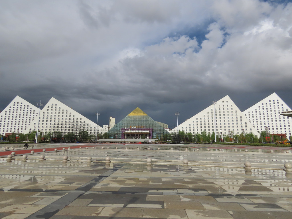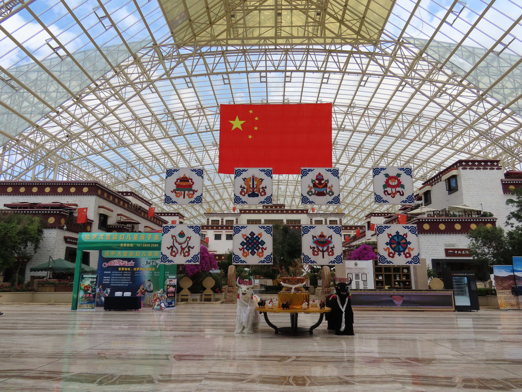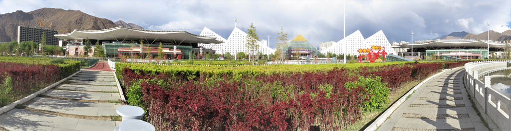 西藏,早就想来了。趁旺季还未到报的当地十二天团,游程是拉萨林芝和珠峰五星团。年纪大第一次上高原,保险起见提前两天到了拉萨。圣境天堂大酒店外貌是三座相连的金字塔式雪山,两头的雪山是客房,中间的是超大的室内广场,整个玻璃幕墙有种室外的感觉适合休闲慢步,初上高原能在这儿调整一下真是太好了。酒店外面也很漂亮,一个很大的人工湖,清澈的水面像镜子似的倒映着天上的蓝天和周围的一切,一只白鹤在湖面上飞翔,阳光透过稀疏的雨丝洒向大地,远处的高山近处的房舍,低的花草高的树木,安宁祥和,西藏,你好美,拉萨,你太漂亮了。