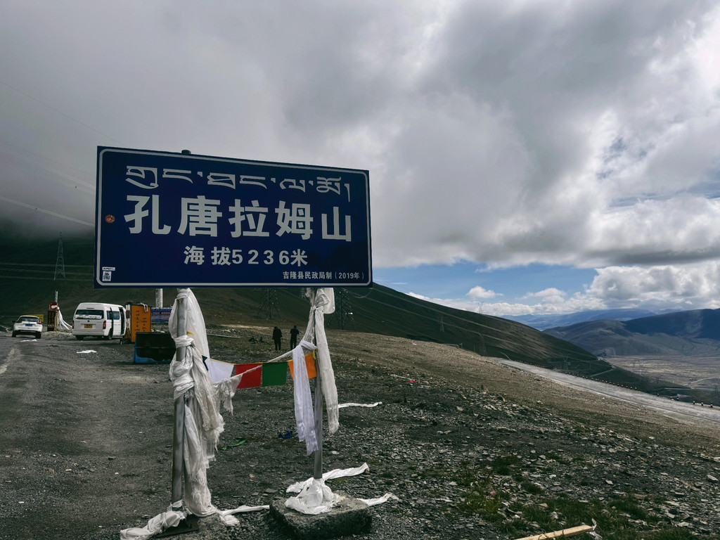 早上9:00收拾行装重返孔唐拉姆山,这是进出吉隆沟和吉隆镇的必经之路……途经海拔5236米垭口时狂风大作,徒步至观景台已感举步维艰、气喘吁吁,这个高度可是比珠峰大本营还高啊,放慢脚步、放缓动作,需要几分钟的适应……