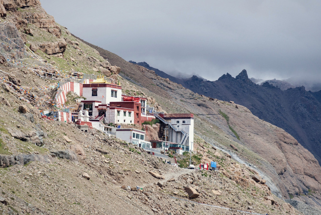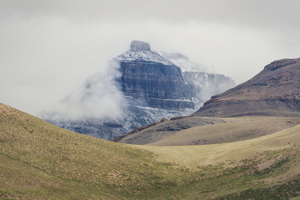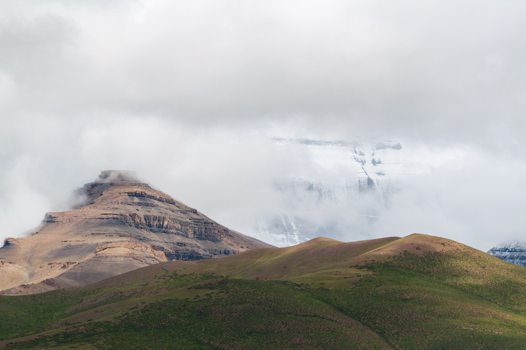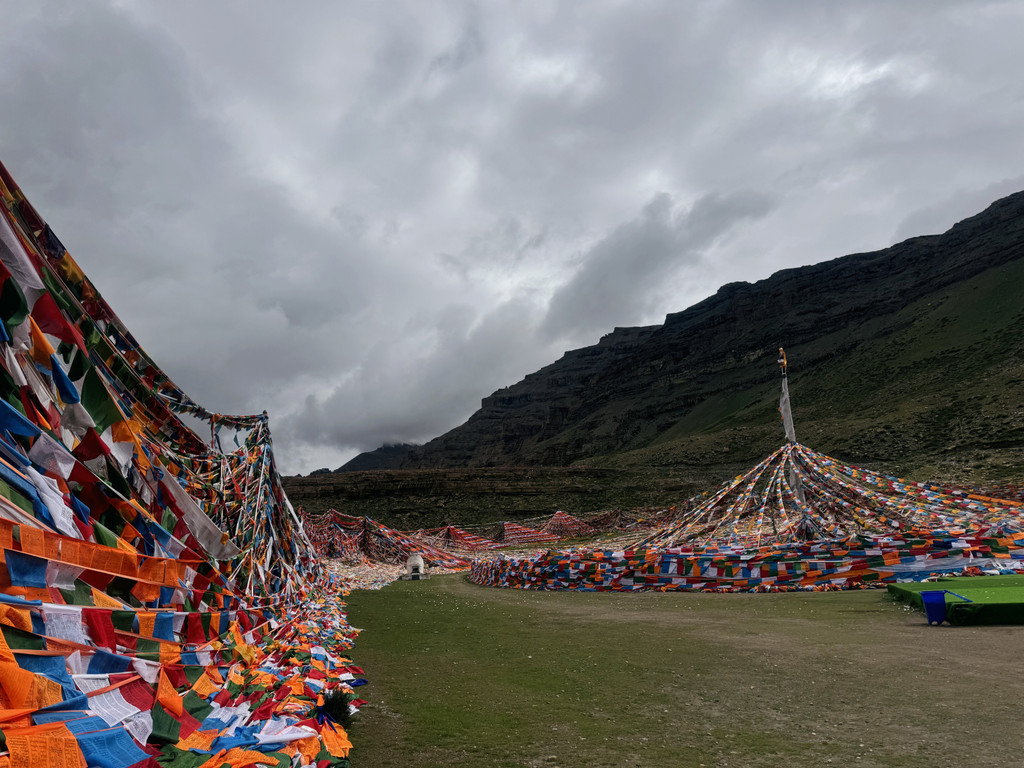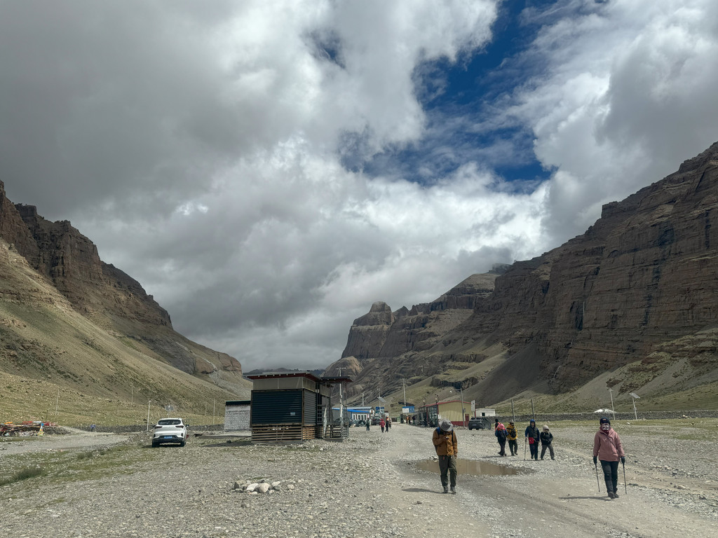 昨夜小雨不断,清晨仍然乌云密布,从鬼湖(拉昂措)方向一路压至冈仁波齐,大本营遍地湿漉、寒气逼人,厚装羽绒披挂上阵才能抵挡……