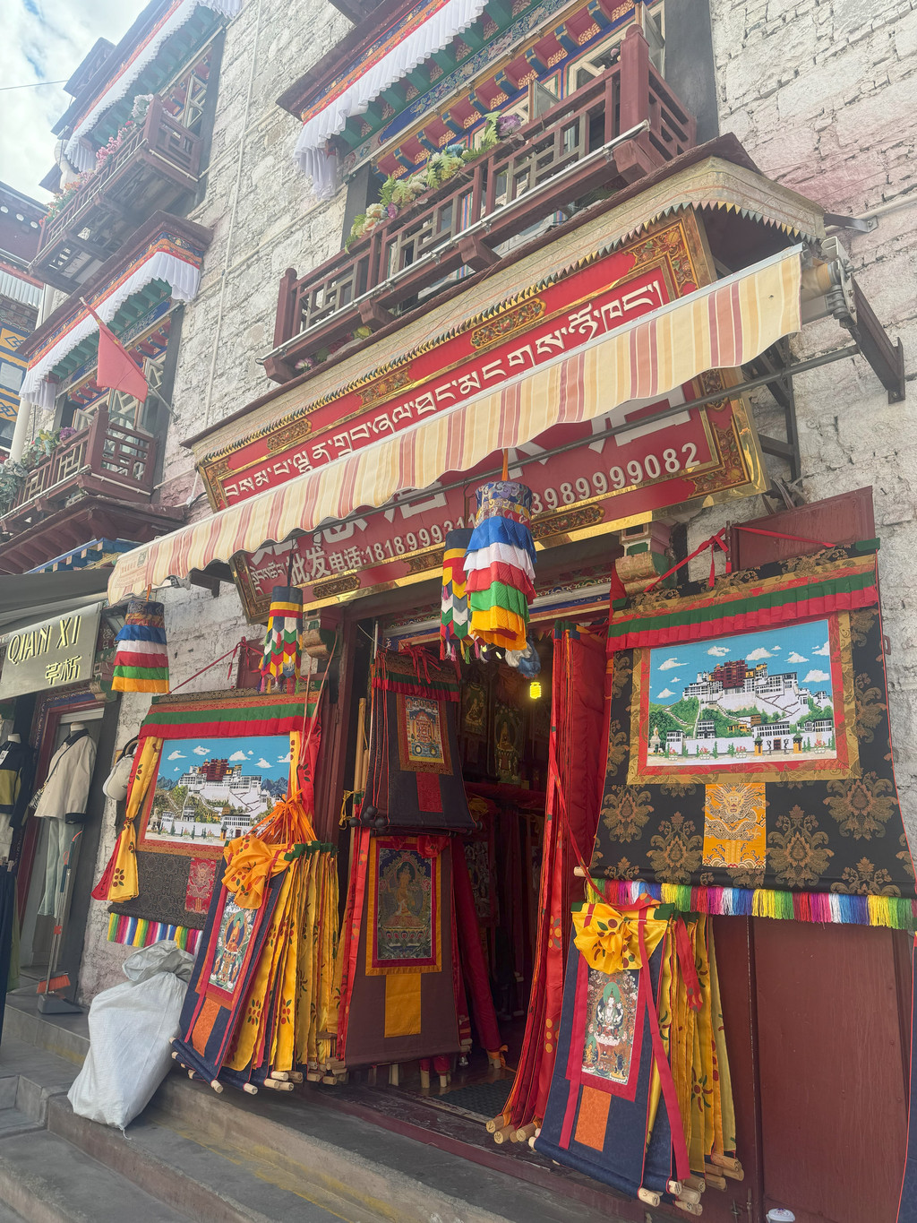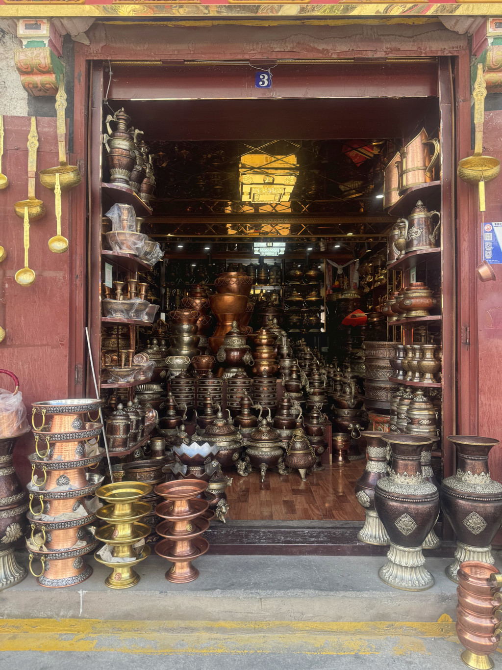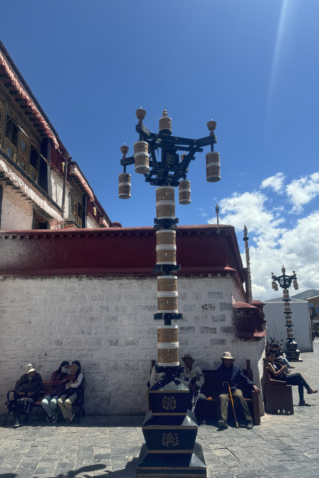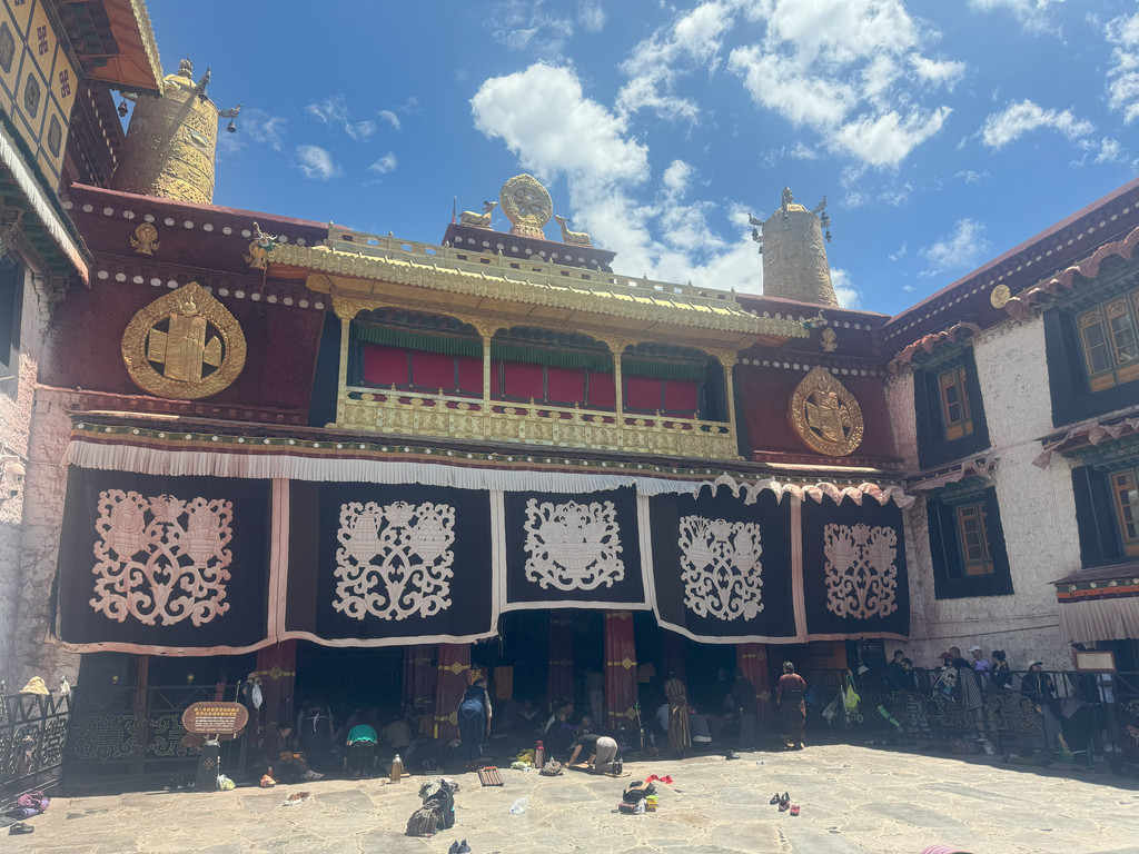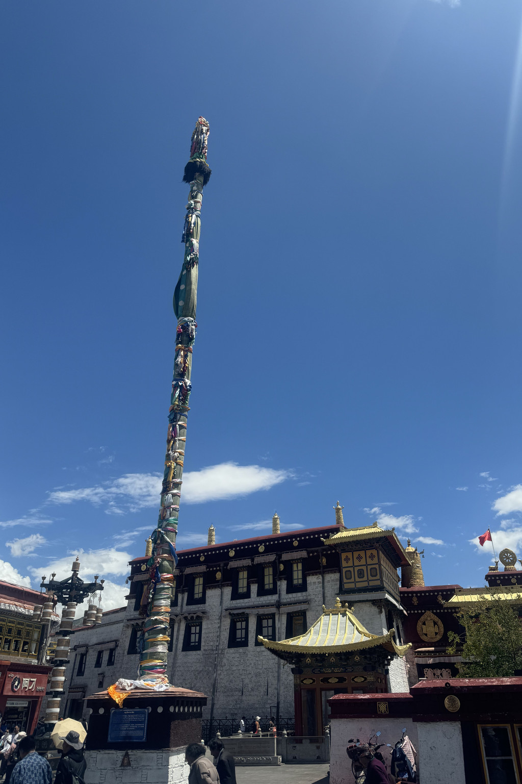 步行穿过大街小巷来到八廓街,远远的已经嗅到独特的 藏香味,佛具店与藏式服装店占据了大部份铺面,七拐八拐终于来到了大昭寺,过了安检就是广场,经幡柱依旧耸立,转街的民众依然络绎不绝,磕长头的信众脸上写满了虔诚……