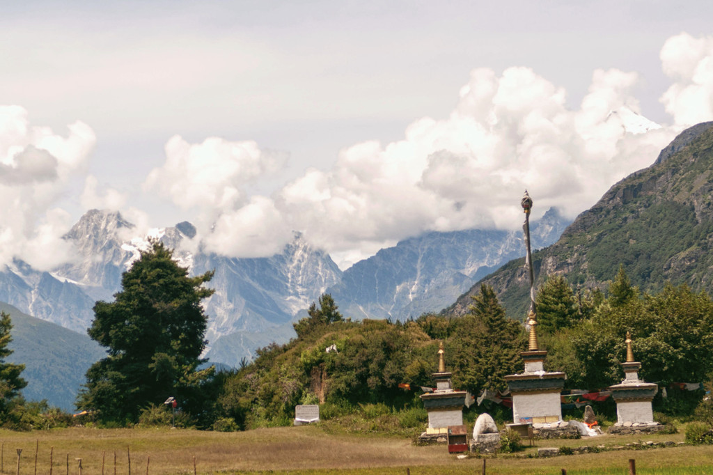 清晨的吉隆镇被一层层云雾环绕,四周的山峰或露尖顶或露半腰,茂密的森林郁郁葱葱充满生气,在高原地区有此仙境实属罕见,与林芝的雅鲁藏布峡谷极为相似。