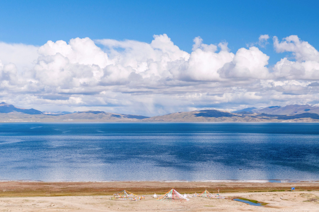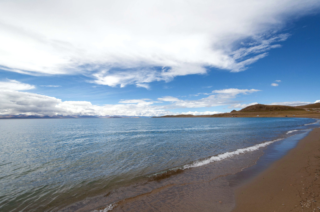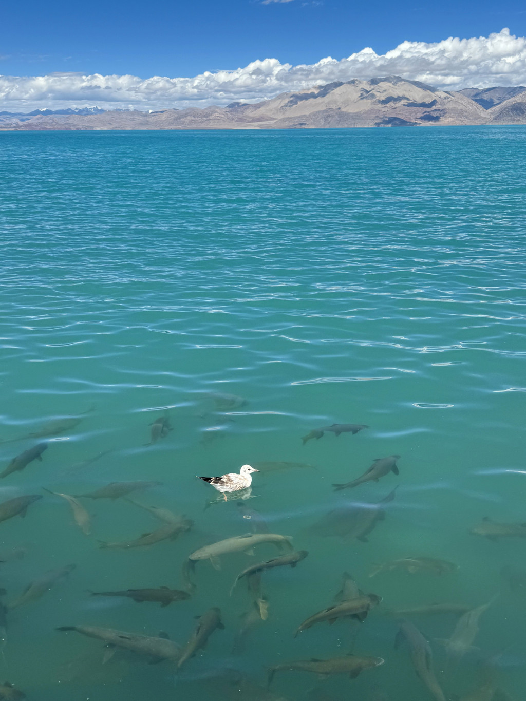 在拐入663乡道后,纳木措已经在不远处了,进入北岸是不需要门票的,车辆可以开到湖边,感觉超级棒,天色由阴转晴,湛蓝湖水与雪山群峰互为映衬,海鸥与游客融洽相处,投喂啄食配合默契,白牦牛以吉祥物的身份成为了追捧的合照对象,翻腾细浪的纳木措在蓝天白云下尽显圣湖光彩,动静皆有的场景更为其锦上添花!