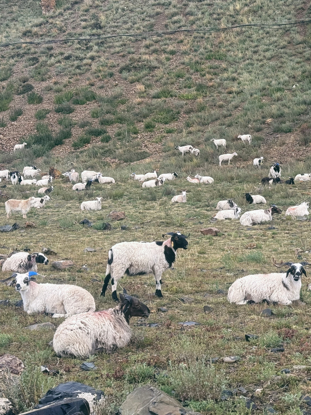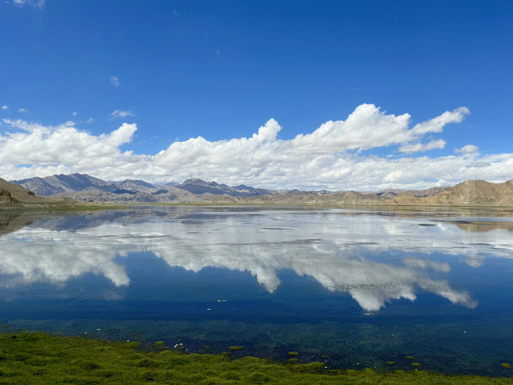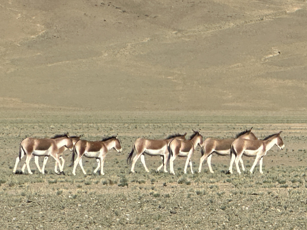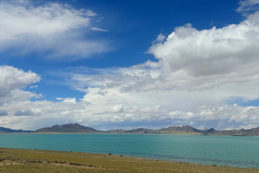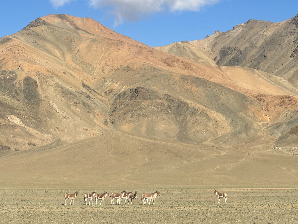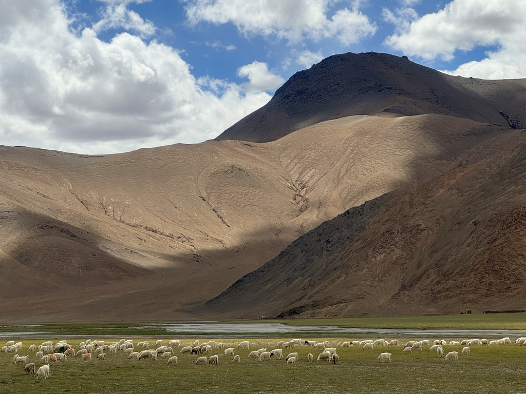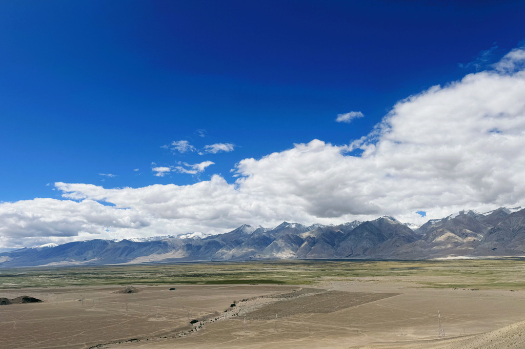 大清早走G219前往班公湖,沿途的湖泊、湿地和广袤无垠的牧场颠覆了我对阿里的认知,原以为人迹罕至、寸草不生的景象被生机勃勃的画面所取代,藏羚羊、藏野驴、岩羊等等都活跃在视野之中,牦牛群和羊群更是多不胜数,国道亦然成为它们的主场,闲散漫步有之,跳跃横跨有之,更有甚者直接站立路中,与过往车辆对峙……蓝天白云下的群山延绵不绝,行驶其中给人一种公路大片的感觉,“天上阿里”的称号确实名不虚传。