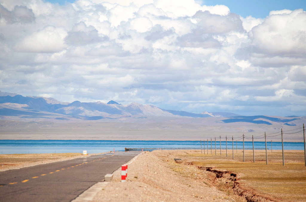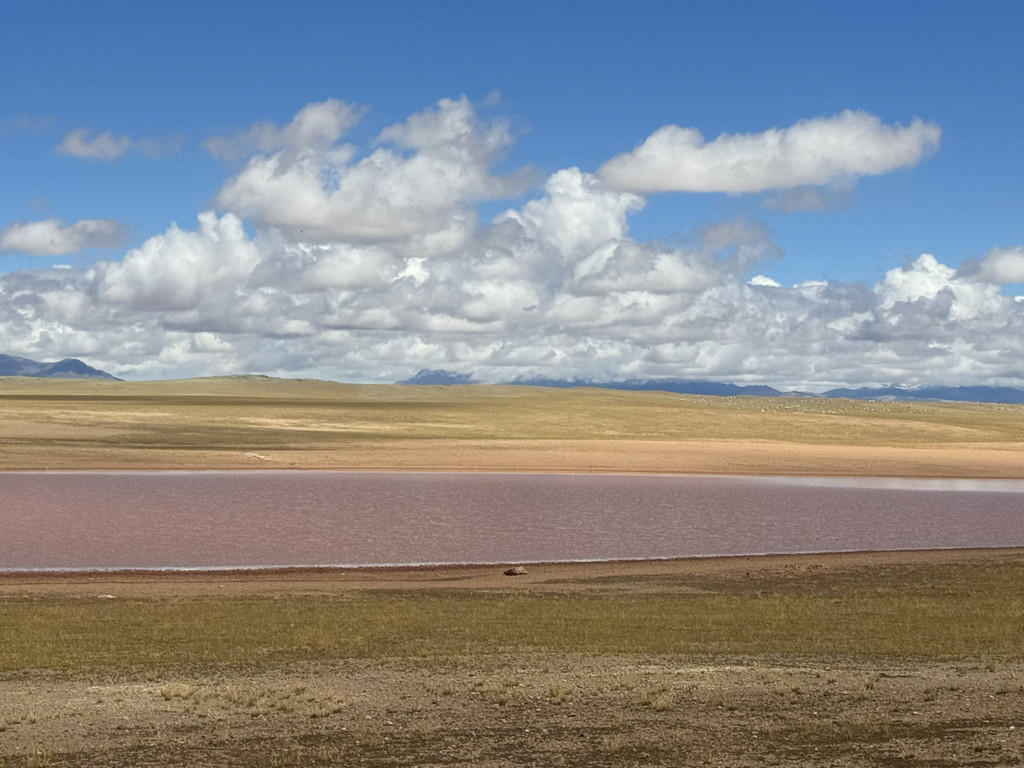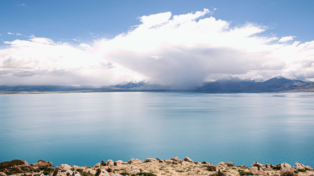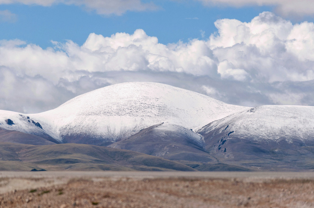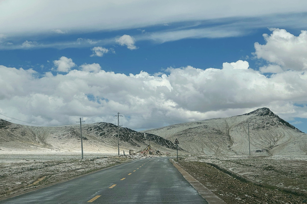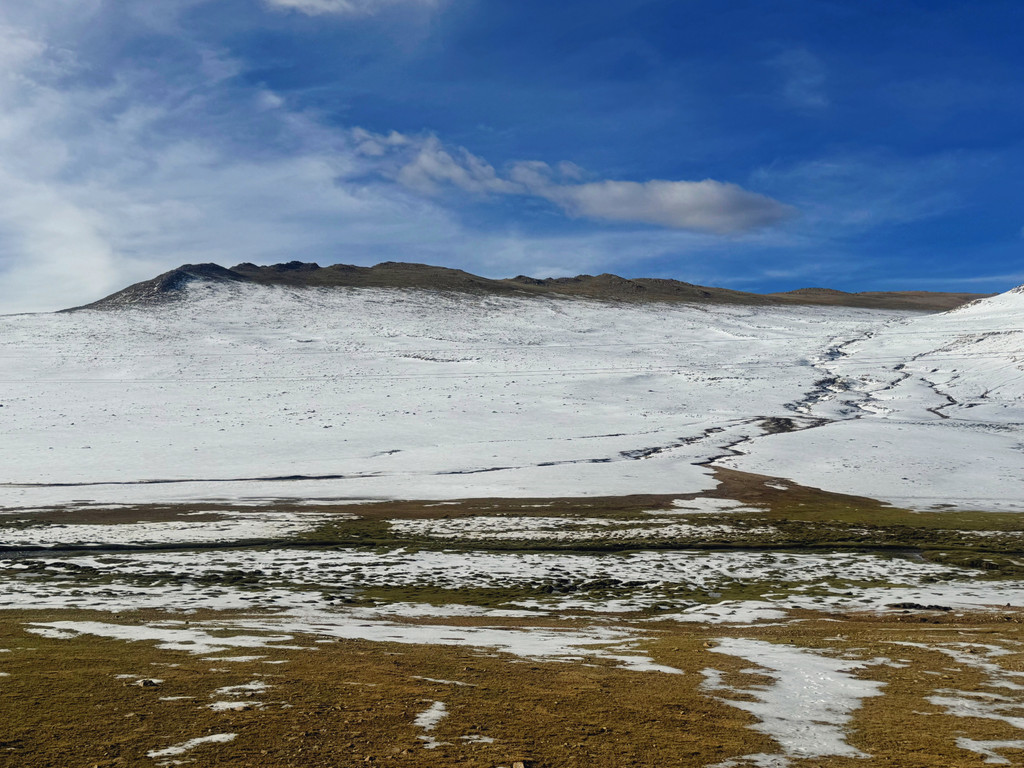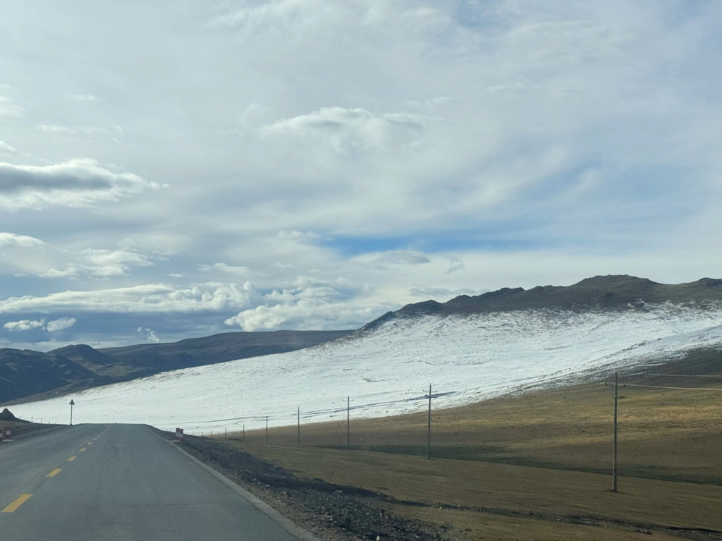进入改则县境界,白茫茫的积雪令我们眼前一亮,下雪了,路面的少许结冰表明了这场雪已有一段时间了,雨夹雪的场景随车程而持续出现,气温下降、视野模糊,行驶二、三十公里后终于天晴了,经过雄巴再翻过达坂,改则县城已经肉眼可见了,一路的高山湖泊目不暇接,一措再措看得都有点审美疲劳了……