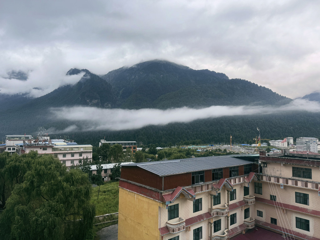原计划今早7:00出发,没想到吉隆沟的晨雾如此厚重,翻山越岭的能见度很低,特别是回肘弯和下坡急弯将会十分危险,安全起见还是等太阳出来雾散了再走,舒坦地吃完早餐吧。