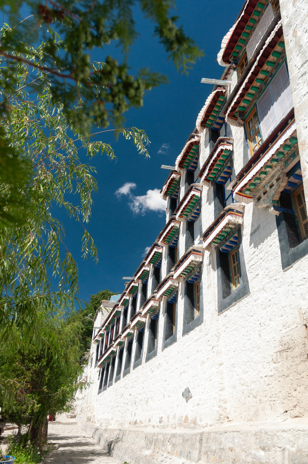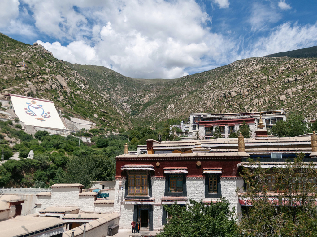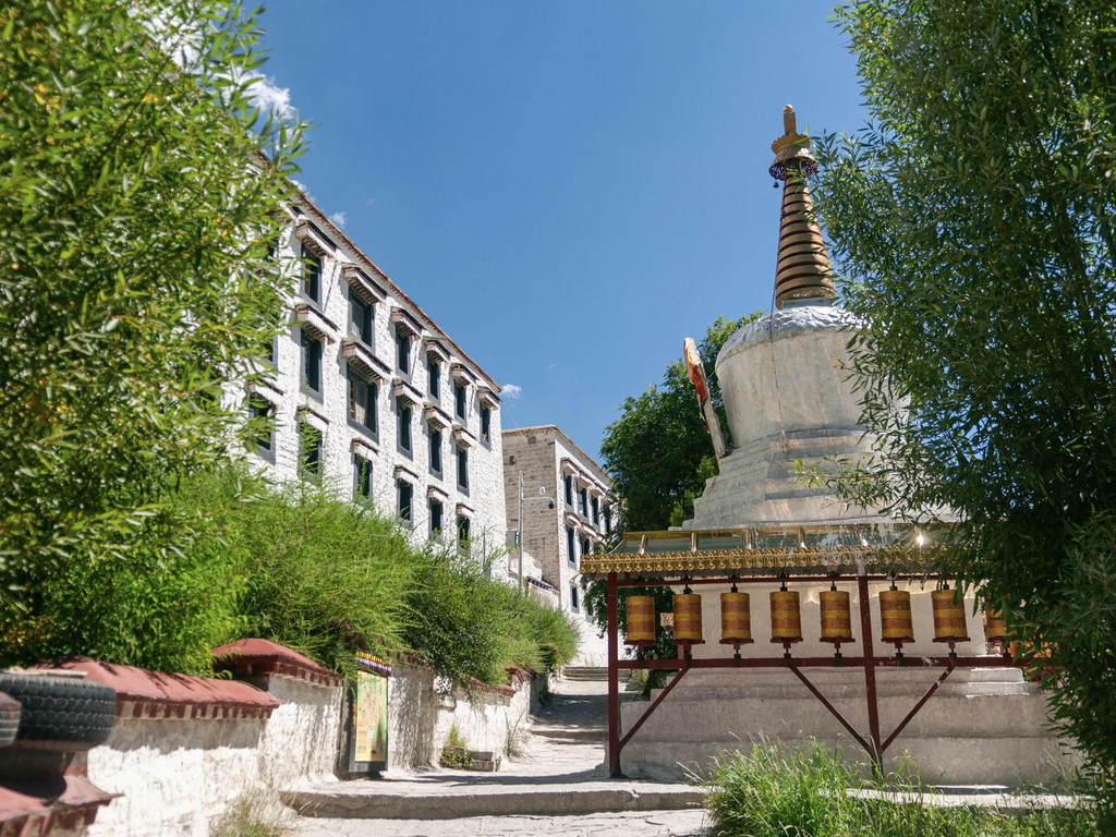 慕名而来、心仪已久;在山脚仰望顿感震撼,白色的建筑群鳞次栉比铺满半山,正如米堆丰盈相当有气势,因此藏民也称之为“堆米寺”;故名为哲蚌。