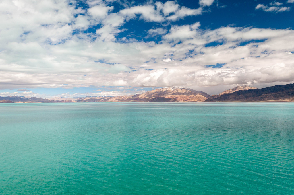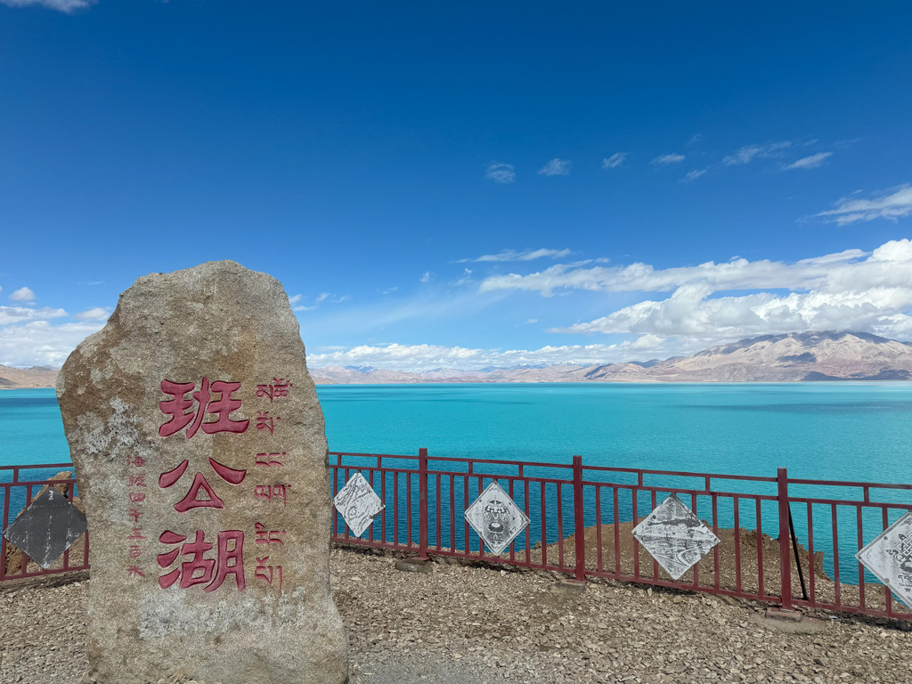 从狮泉河到班公湖140公里路程,2小时左右就到达观景台了……宽阔的湖面碧绿清澈,周边雪山环绕、白云低悬,就如一块硕大的绿宝石镶嵌在群峰之中,飞鸟雄鹰不时掠过,给这片宁静安逸的画面增添了几许生机……
