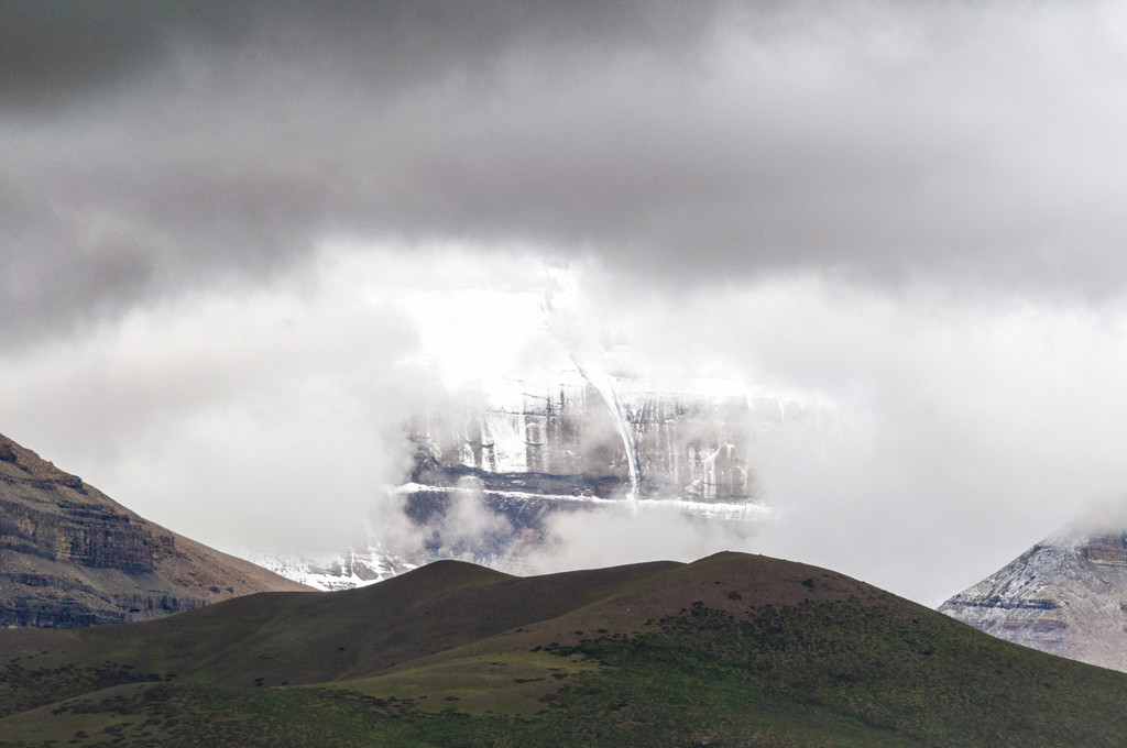 返回大本营的路上,再次受鬼湖所赐,滂沱大雨迎面袭来,这场雨也浇灭了我们目睹冈仁波齐的希望,就算雨后的彩虹也没法勾起我们的兴趣……时间已近晚上九点,呆坐房中百无聊赖,守候观察的朋友突然惊呼:出来了!出来了!我抓起相机跑出房门,对!是跑的,这个在高原已经很久没做的动作,太兴奋了……冈仁波齐完整无缺的展现眼前,金字塔般的山峰、白雪皑皑的尖顶、如王者般被周边群峰簇拥着;终于看见了,在阿里这片神奇的土地上,奇迹是会发生的,因为它只展现了十多分钟,就再次被云雾环绕,多么神奇的经历,难忘!太难忘了!心情无法用笔墨形容!只想说:谢谢!谢谢!扎西德勒!