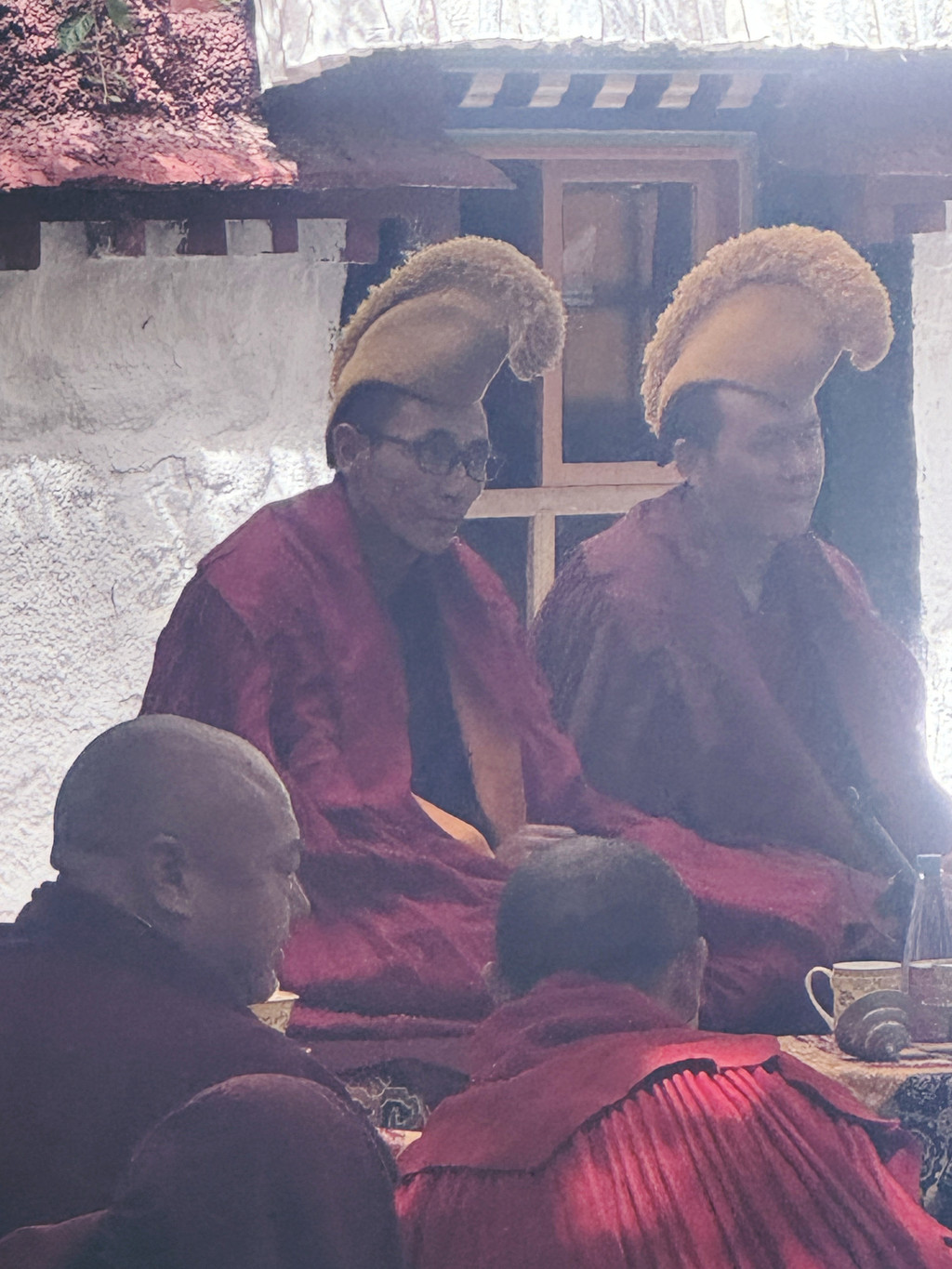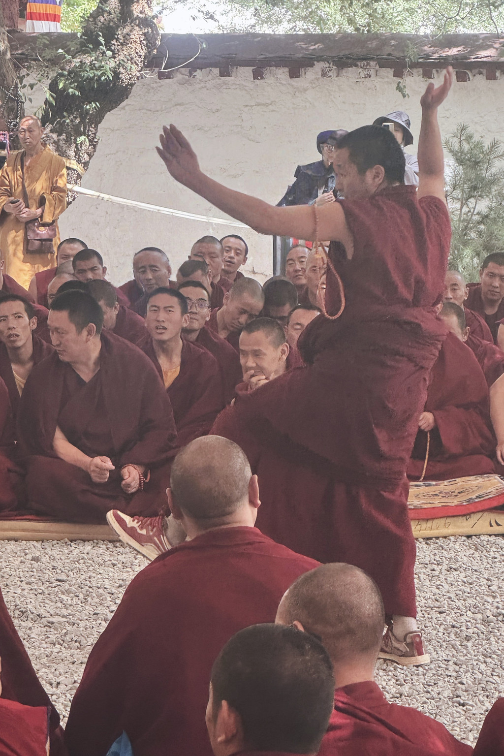 下午我们转往色拉寺,15点至17点的辩经不容错过,色拉寺属于拉萨三大寺之一,藏区诸多寺院(包括四川、青海)都会选派年轻有为的僧侣前来学习,学习结束就返回原寺院传经布道,色拉寺在藏传佛教中的地位由此可见一斑。今天进入辩经场看见的排场与上次不同,原来正巧赶上了各地学员的辩经答辩,类似于毕业答辩,由寺院两位高僧主持问答,各位学员有亢奋作答,也有娓娓道来;或抑扬顿挫,或手舞足蹈,虽然听不懂藏语,但现场气氛还是感染了围观听众……与四年前看到的一众师兄弟两两逐对辩经不同,这回仪式感较强,等级也高,算是开眼界了,有缘有缘