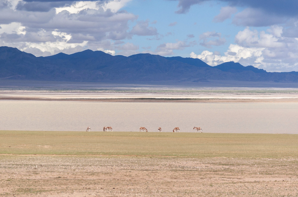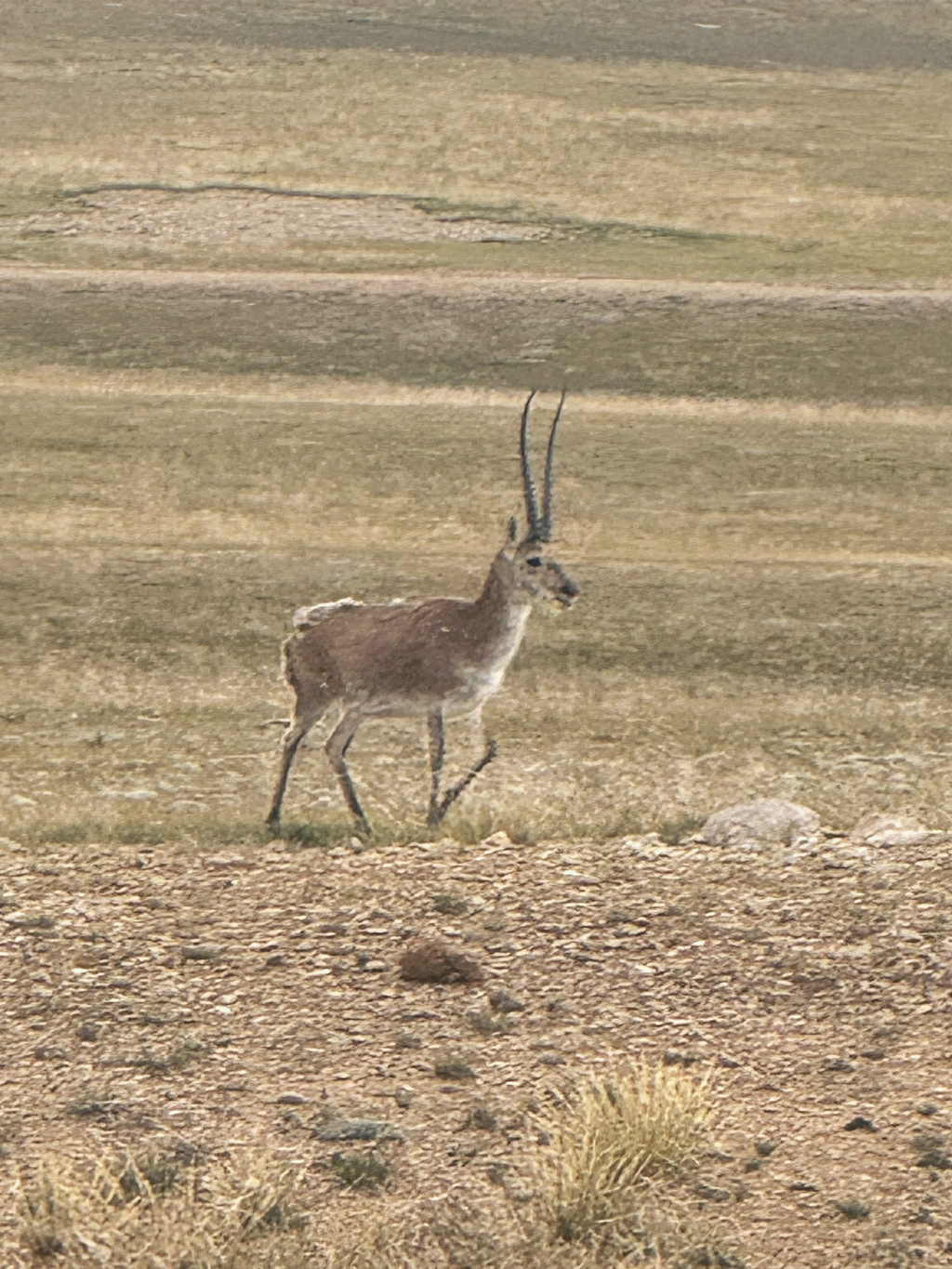 路上车流很少,视野开阔的路程将藏北风光一览无余,到了革吉县路段,盐湖、湖泊就陆续呈现了,藏野驴、藏羚羊的出镜率也大幅提高,群山环绕的牧场遍布公路两侧……