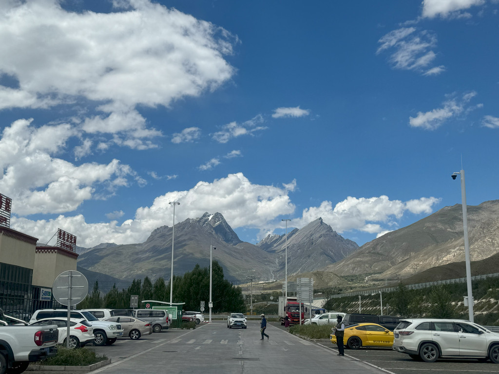 一如既往的阳光明媚,驱车开出日喀则再上G318,四年前的珠峰大本营之旅重现眼前,白云压着山脊、牛羊成群遍布河谷;在经过珠穆朗玛国家公园大门时,美好的回忆在脑海里回放……大本营珠峰测绘纪念碑、绒布寺、无尽的“之”字形盘山路,加乌拉山口的迎风经幡……就像昨日景物一帧一帧的浮现,在穿过岗嘎镇后,路旁的喜马拉雅山如影随行,终年积雪的山峰与蓝天白云相互映衬,长途驾驶的疲惫在观赏中得以舒缓……