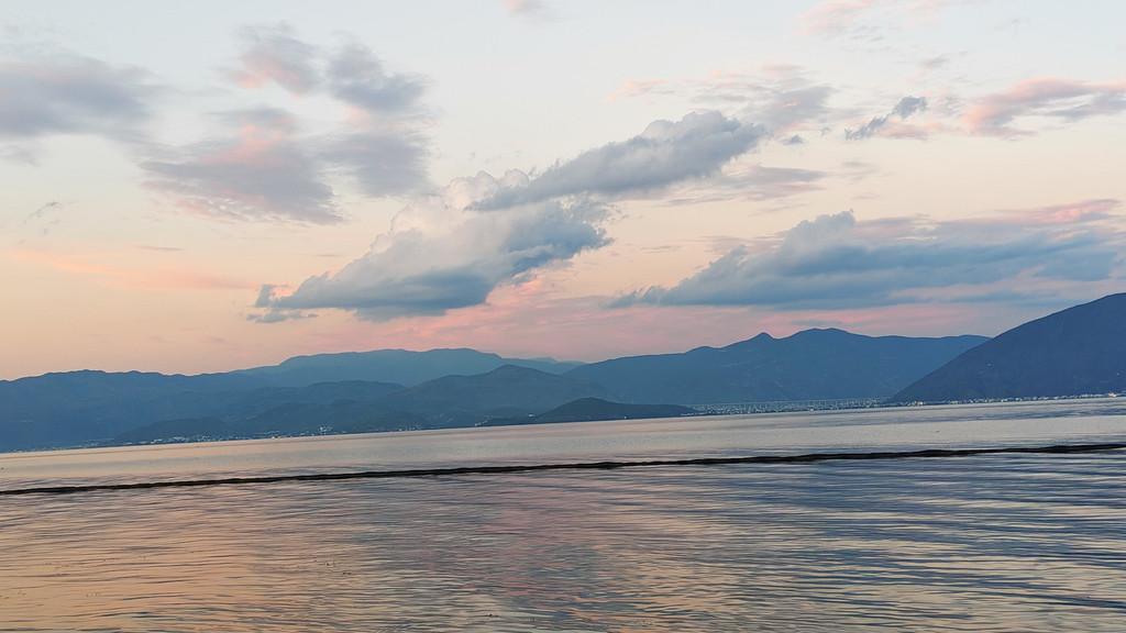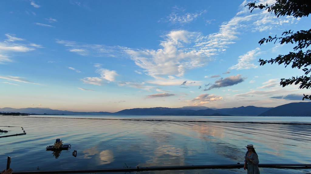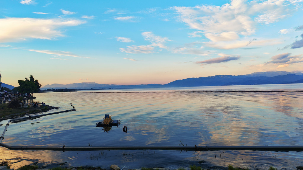 日落时分,我们赶到S湾,天空映衬下的洱海很美,已经迫不及待的想到海边观看日落,到处都有停车场,10元任停,这个时间点游客不是太多,我们停在街道里面的停车场,看管停车场应该是一对夫妻,听说我们要租单车,告诉我们他们也有单车租赁,然后带我们到了一个小房子里,里面有十几部单车,估计是自己私人经营,没有店铺,看管停车场的同时租赁单车,我们租了两部装饰着鲜花的自行车,快要天黑了,每部10元,讲价15元两部,沿着生态廊道骑行,迎着海风,听着潮起潮落,听着海边歌手们唱的歌谣,仿佛置身于梦幻之境。太阳缓缓沉入洱海,粉色的霞光洒在海面上,波光粼粼,整个S湾被染成蓝粉。天空呈现出绚丽的色彩,从橙红到粉紫,与洱海的蓝色相互映衬,形成一幅绝美的画卷。S湾有很多专业的拍摄人员,景色实在太美,我忍不住找了专业的人员帮我拍了几张,留个纪念。这次在S湾停留的时间有点短,抵达的时候已经是日落时分,下一次再来大理时,我想要住在S湾的民宿,这次的攻略做的不是太充足,住在大理古城旁边,S湾天气好的时候,可以看日出,看日落,可以踩踩单车,可以慢悠悠无所事事的过上一整天。