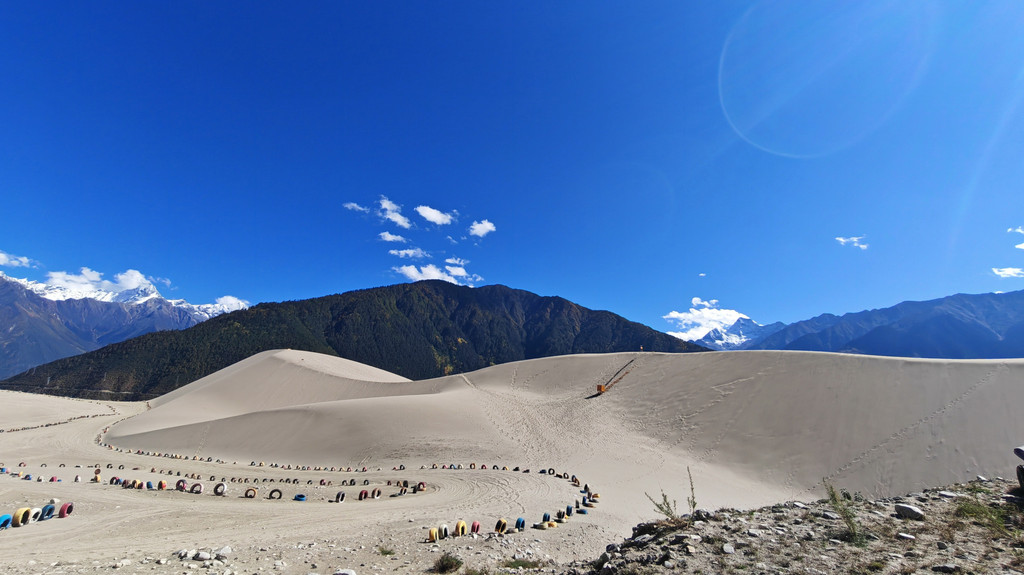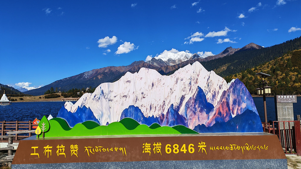 鲁朗国际旅游小镇是在刚刚听到一个导游说是由广东建设的园区,我们想去参观一下,鲁朗国际旅游小镇总规划用地范围10平方千米,占地132公顷,总建筑面积21万平方米,共有250多个单体建筑,总投资超过50亿元人民币。我们去色季拉山是一路盘旋而上的山路,去鲁朗方向是一路下坡,到达鲁朗国际旅游小镇,时不时能见到三五个游客,开车转了一圈,整个小镇安安静静的,规划的不错,还保留了传统的藏式民居和生活方式,都是地产商修建的酒店为主,还能看到恒大地产、保利集团以及珠江投资字眼。能看到工布拉赞雪山,在藏语中意为“神圣的山峰”,是工布藏族心中的神山,海拔6846米,山峰高耸,顶部终年覆盖着皑皑白雪。