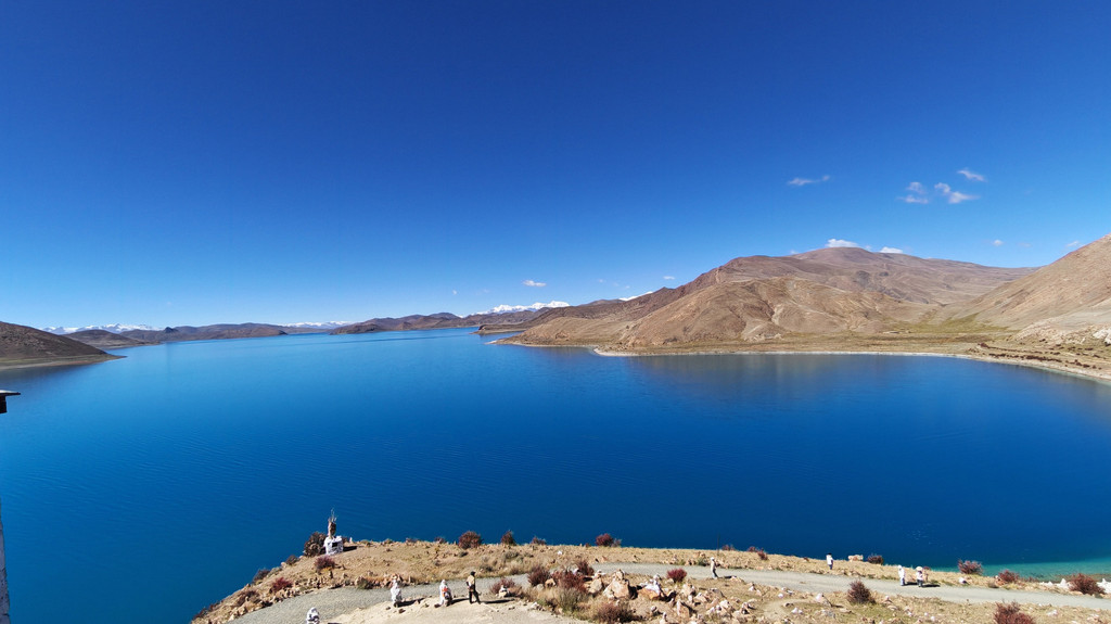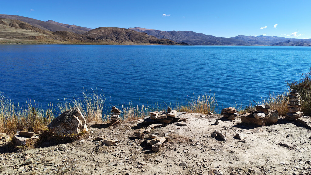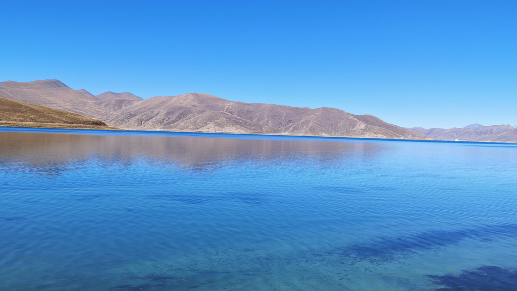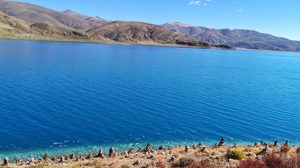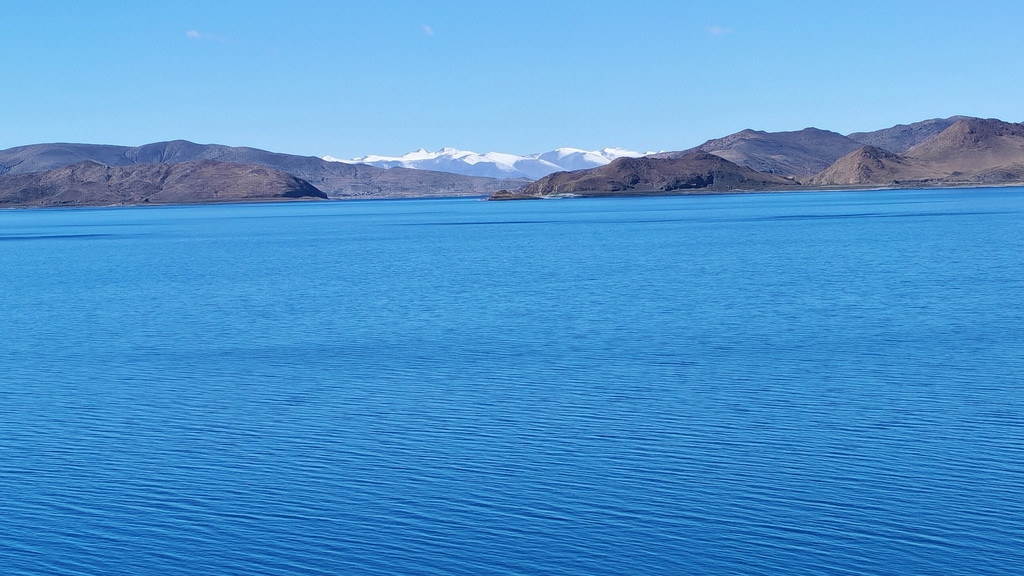 翻过加若拉山,从远处就看到了羊湖,湖水湛蓝如绸,跟昨天纳木措看到的一样,近处看湖水清澈见底,但羊湖安静沉稳,只有微微的风,没有纳木措那么猛烈的风,连帽子都不用带,湖面上没有海鸥,大家在湖边漫步拍照,暖暖的太阳照射下很舒适,远处有三只藏羚羊在安静的吃草,时而警惕的抬头看看周边。