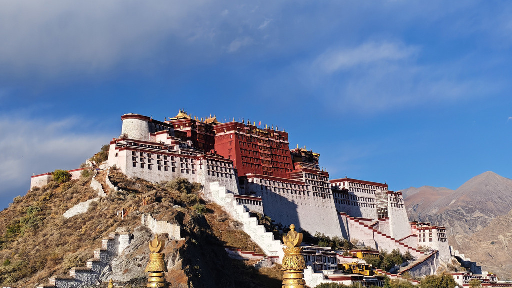 布达拉宫分为三部分,雪城,白宫和红宫,坐落在海拔3700米的西藏自治区拉萨市中心的红山上。公元七世纪三十年代,吐蕃第三十三代赞普松赞干布迁都拉萨,始建布达拉宫为王宫。经过1300多年的历史,布达拉宫形成了占地面积40万平方米,建筑面积13万平方米,共13层,主楼红宫高达115.7米,具有宫殿、灵塔殿、大殿、佛殿、经堂、庭院、回廊等诸多功能的巨型宫堡。1961年被国务院公布为全国重点文物保护单位,1994年列入世界遗产名录。布达拉宫是西藏最闪亮的名片,是举世闻名的世界文化遗产,堪称“西藏历史的博物馆”。