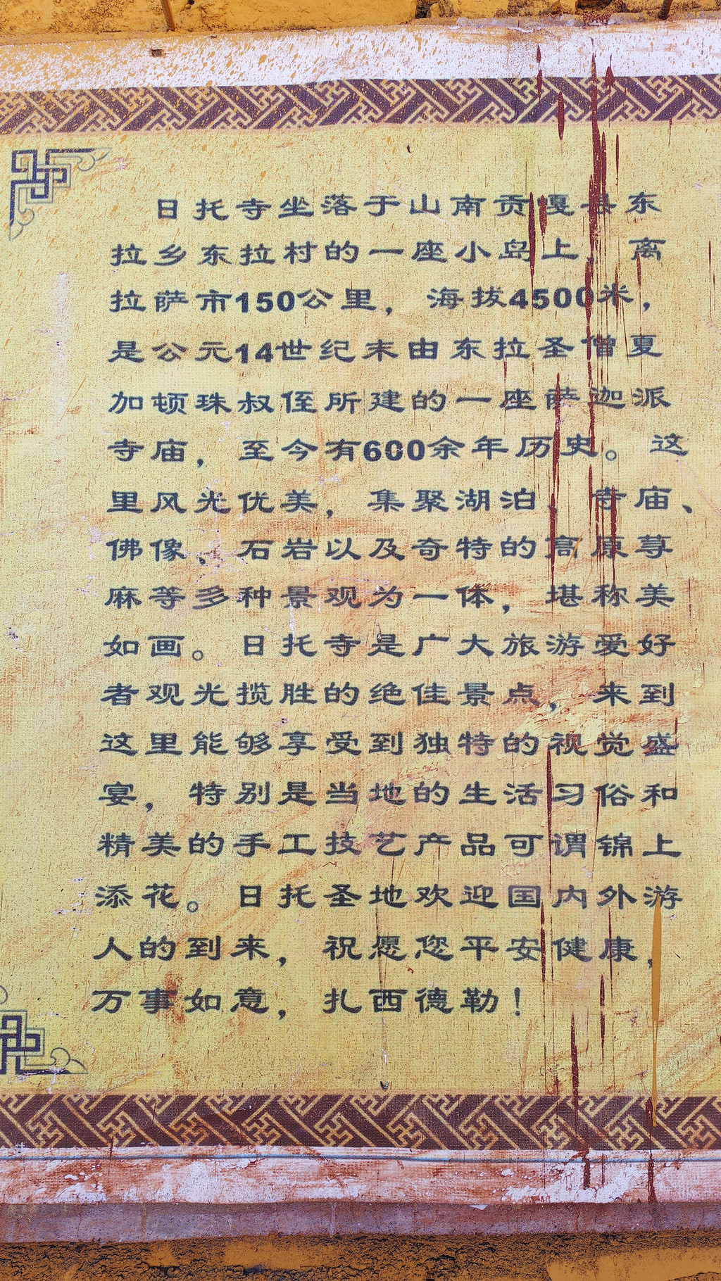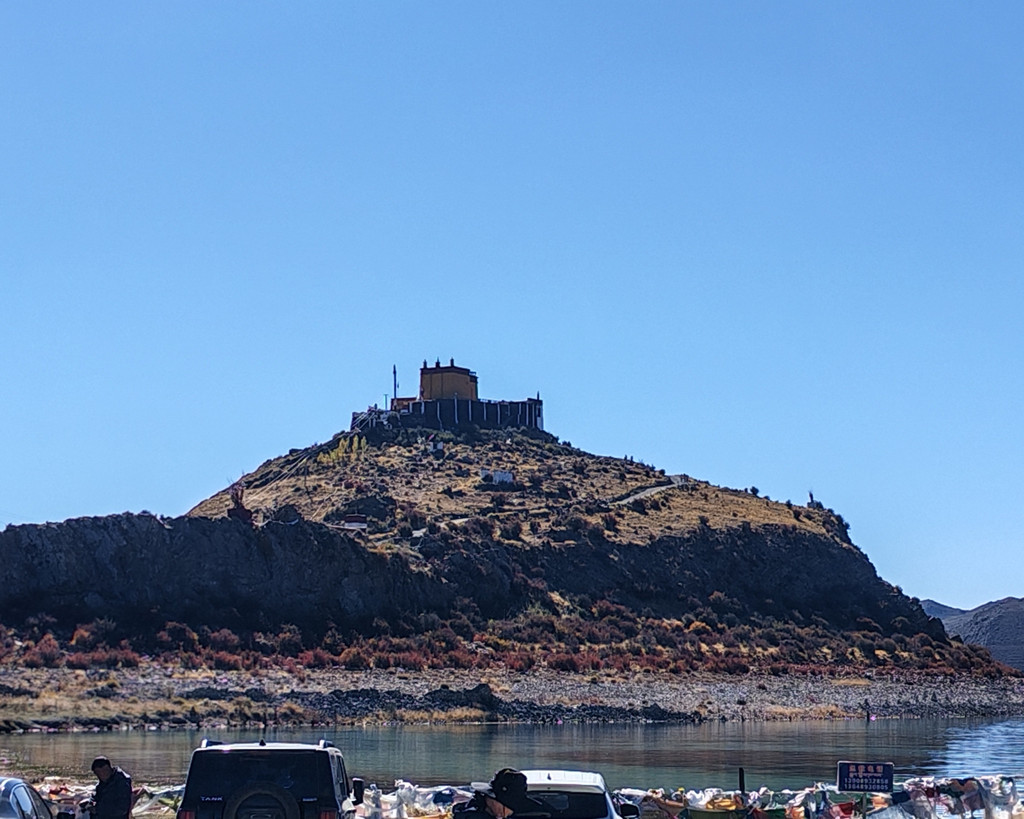 10点半继续赶路,11点抵达羊湖边的日托寺,至今有700多的年历史,位于西藏山南市贡嘎县东拉乡羊卓雍措北岸的湖心岛上,是一座被誉为“世界上最孤独的寺庙”的藏传佛教圣地。