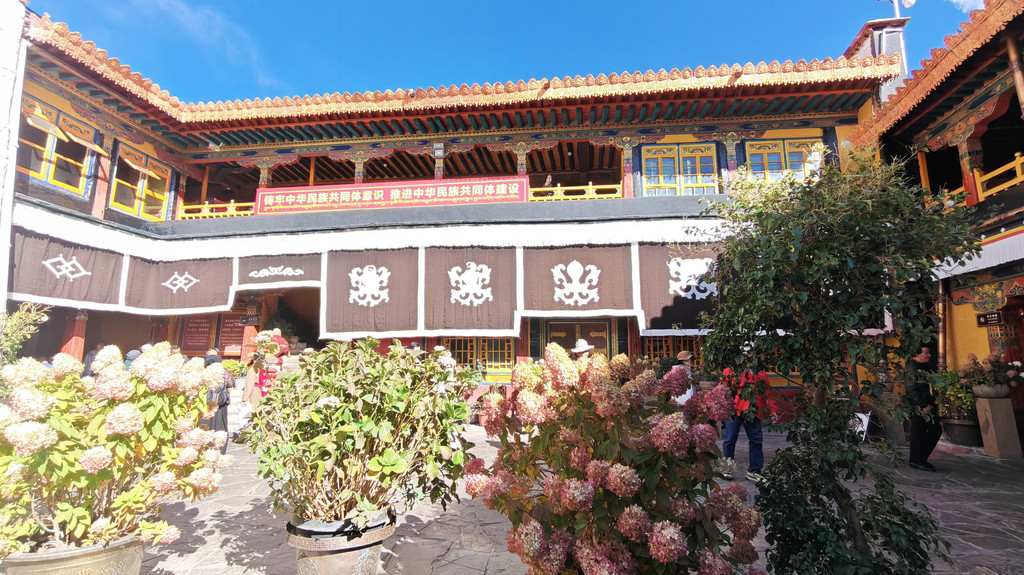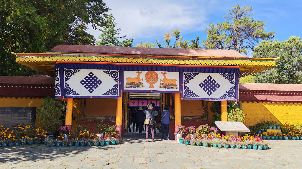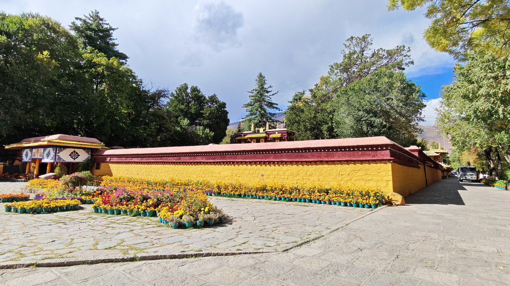 参观完博物馆后,就去了旁边的罗布林卡,罗布林卡在藏语中意为“宝贝园林”,达赖喇嘛第七世建造的夏宫,面积约36万平方米,有房374间,是4A级旅游区,也是全国重点文物保护单位,墙体以黄色为主,在西藏的名气很大,可能对于高原来说这是园林的天花板了,对于我们广东人来说,没感觉到什么很震撼,门票60元/人,感觉一般般。