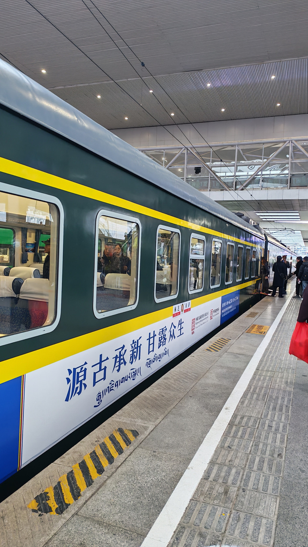 拉萨去林芝,当初查了很多跟团游,都没有我想要的方式,昨天改为租车后,有了我想要的行程,拉萨去林芝,火车(慢车)早上8点30分-林芝13:39(5小时9分);中午有一趟高铁13点,到达林芝下午4:48分,林芝站前往索松村需要2小时,如果坐高铁,时间上赶不及看日落金山,去索松村最大的目的就是看日落金山,因为索松村是《中国国家地理》认证的封面取景地,能直面南迦巴瓦峰,视角绝佳。不坐火车,就只能跟团,拉萨到林芝有400多公里,差不多要一天时间,坐车太辛苦。火车虽说是慢车,K字开头的火车,其实也不算慢车,也不是传说中的绿皮火车,已经很久没有坐过这样的火车,过安检的时候,还有一瓶便携式未开封的氧气被没收了。火车的每排位置都有小桌子,比高铁的位置要宽很多,如果有熟悉的几个人一起坐,可以聊天,磕瓜子,可以打牌(感觉回到了当初上大学时坐火车的年代),坐火车的人都是大包小包,车厢之间没有专门放行李的架子,只能放在座位上的行李架上,空间比较高,我们的拖箱有点重,有点担心会不会承受不了掉下来,还是旁边的乘客很热心的帮忙托上去的,后来才发现比我们大很多的箱多的是,都是放在架子上。
