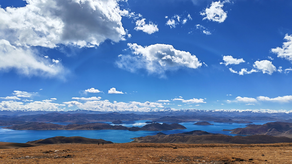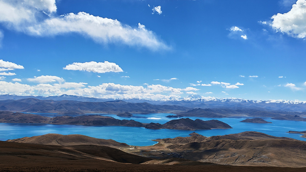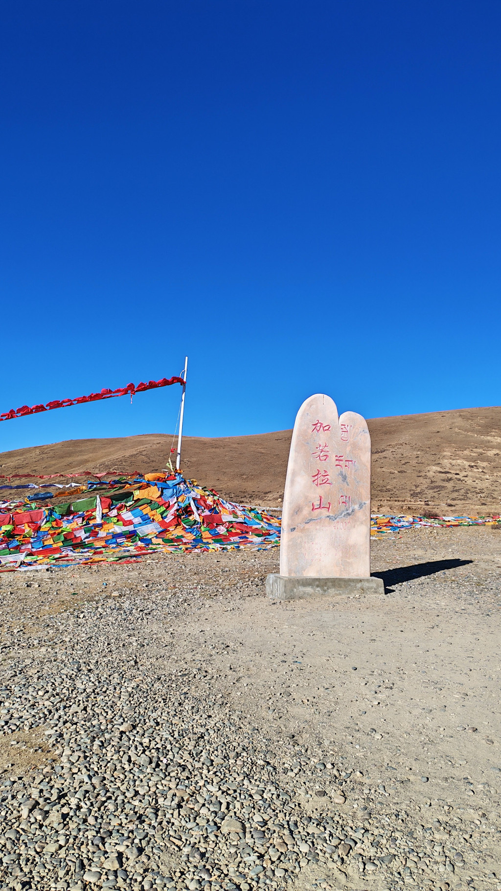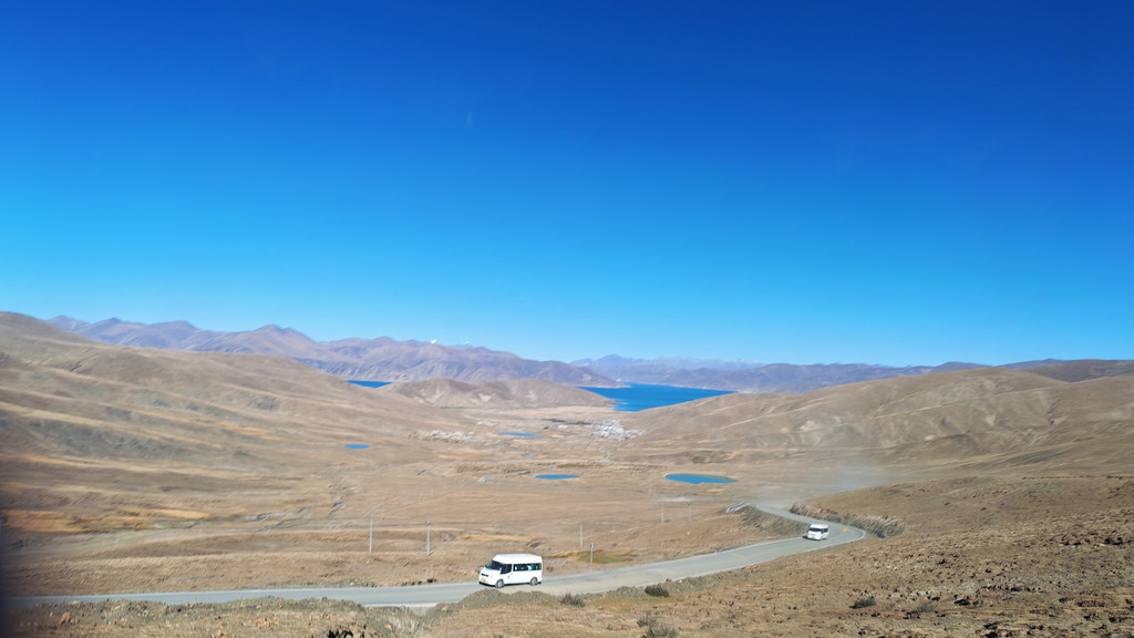 羊卓雍措藏语意为“碧玉湖”,“天上的湖泊”,位于西藏自治区山南市浪卡子县、贡嘎县境内,距拉萨西南约70公里,湖面海拔4441米。羊卓雍错东西长130千米,南北宽70千米,湖岸线总长250千米,湖水面积638平方千米。它是因约4亿多年前冰川泥石流堵塞河道而形成的内流湖,水源主要来自四周念青唐古拉山的雪水,是青藏高原南部最大封闭性的低浓度咸水内陆湖泊,也是喜马拉雅山北麓最大的内陆湖泊。上午10点左右抵达海拔4700米的加若拉山,凡是山口的地方都有很多玛尼堆,且挂了很多经幡。