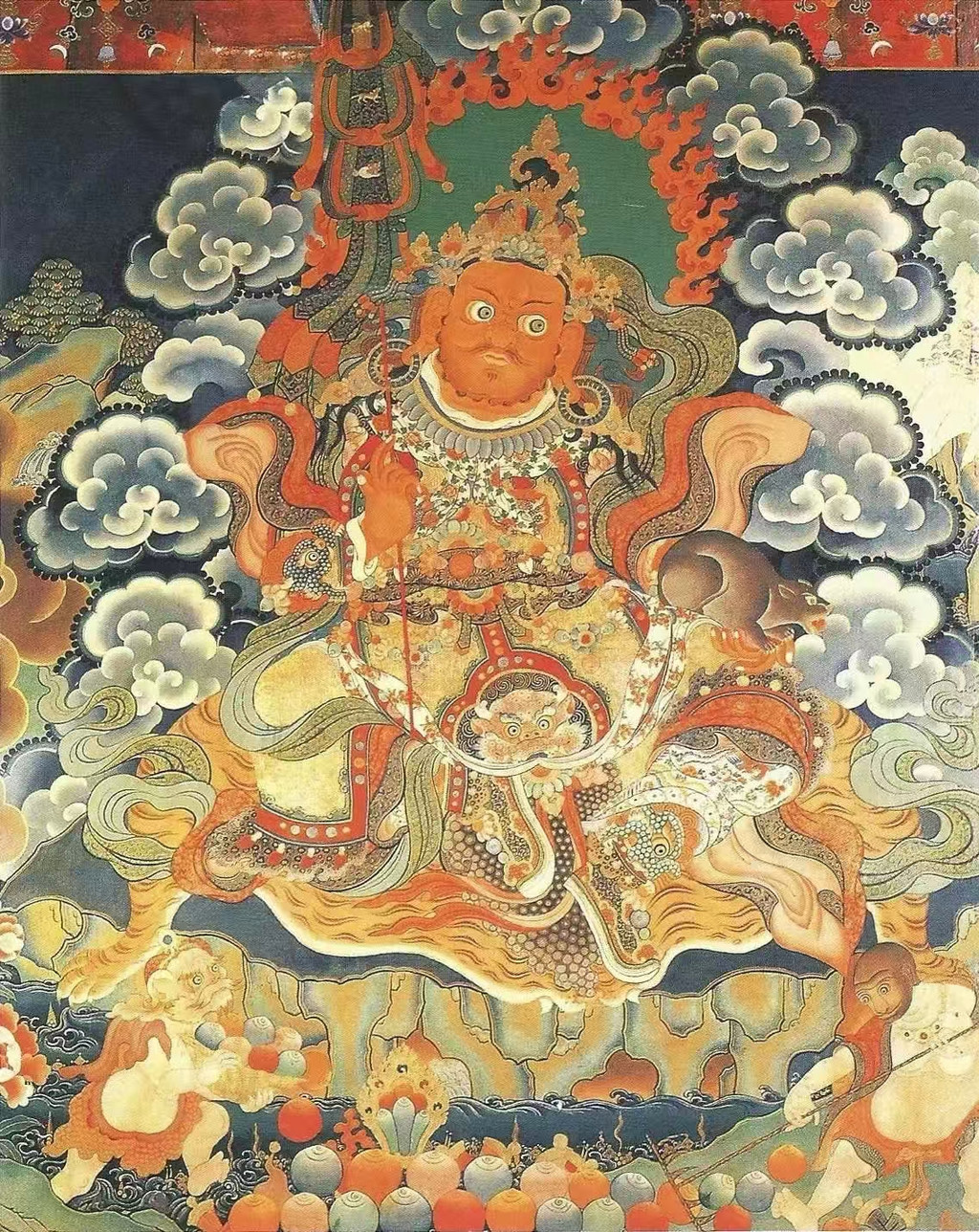 爬上台阶,来到白宫的门廊,门廊悬挂的黑色帘子,是用牦牛的毛编织的,门廊的四周是精美的壁画,而它们的原材料是绿松石、珍珠、红玛瑙等天然矿物质所构成的,四周的壁画是四大天王,这些壁画历经数百年岁月,依然色彩鲜艳、线条清晰。