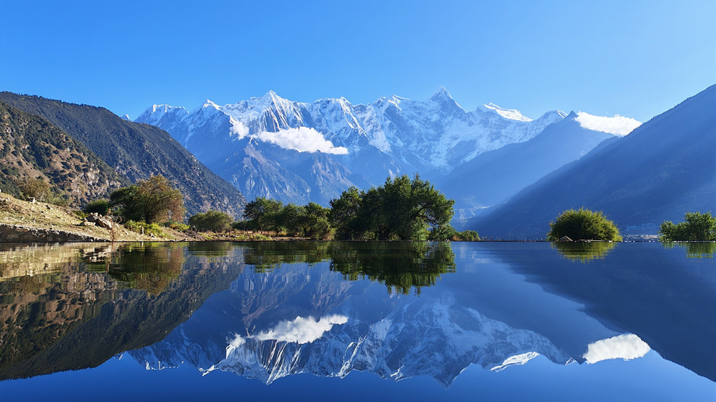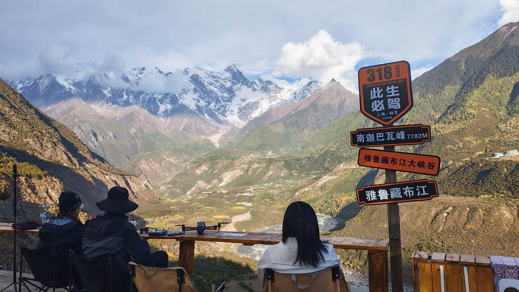 吃过早餐后去了藏地归心酒店铁门旁边的观景平台,看雅鲁藏布江大峡谷,离开前我们还有点恋恋不舍,去了店长推荐的桃花韵酒店,听说酒店门口有一个水池,能看到南迦巴瓦峰整个倒影,我们也是抱着去看看的心态,没想到那个倒影的景色惊艳了我们,队友拍照拍到不肯离开,陆续也有很多人在那里拍照,拍视频。