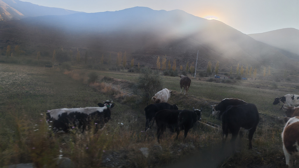 我们的座位都是在过道上,靠窗的乘客听到我说如果靠窗就好了,可以看风景拍照,居然愿意跟我们换位置,感觉坐上这样的列车很接地气,人人都很热心。靠窗的风景果然很好,现在初秋,沿途的树叶已经黄了,坐在慢悠悠的火车上,看着外面美丽的风景,希望时间再慢一点,再慢一点。