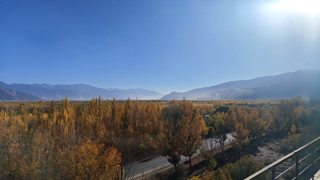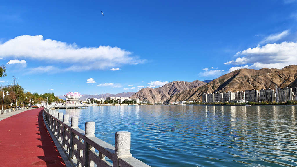 回程时队友高反又开始严重,吸氧要由健康调到应急,吸了应急(含氧量高)半小时后他说不会头痛了(高反严重的,确实是需要购置钢瓶氧气,便携式的起不了大作用),今天回来还很早,到拉萨才下午4点多(日落是在晚上7点左右),也是在西藏博物馆解散,回到城区没有高反,心情都好了很多,明天就要离开拉萨了,正好在博物馆附近的一家特产店去买了特产,买好特产走到拉萨河边,沿着拉萨河的人行道一路看风景走回酒店,顺便也把晚餐的餐厅也订好了。回酒店休息的时候把去林芝的方案重新进行了修改,推掉了拼车改为租车,同时林芝只住宿一晚,另一晚改去索松村,这样可以下午抵达索松村,运气好的话可以看日落金山,之前中午的高铁已经改为早上的火车。