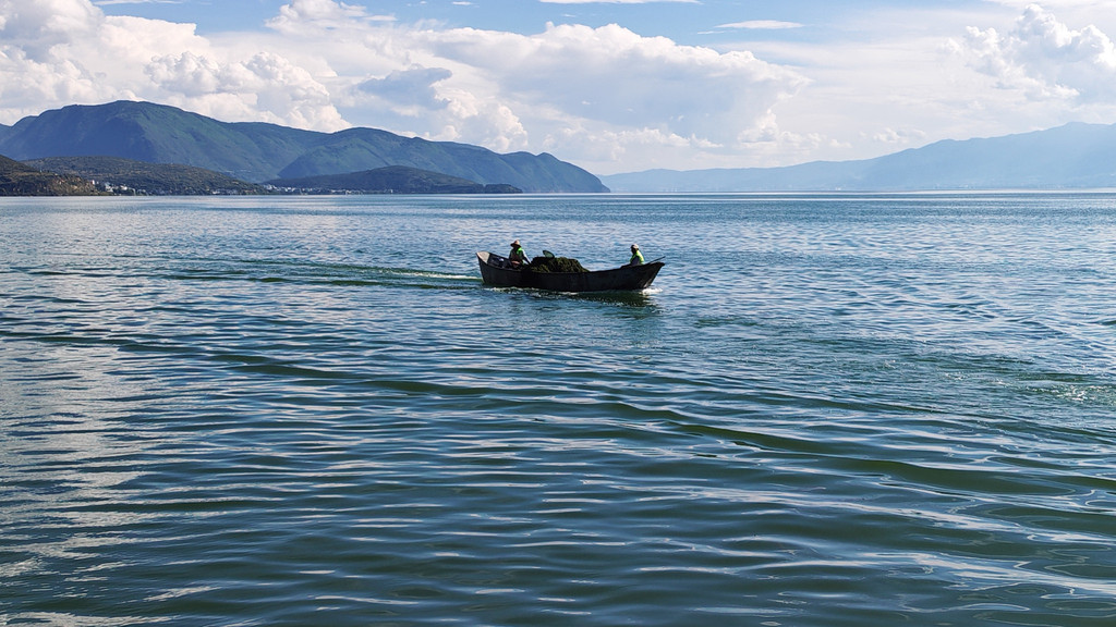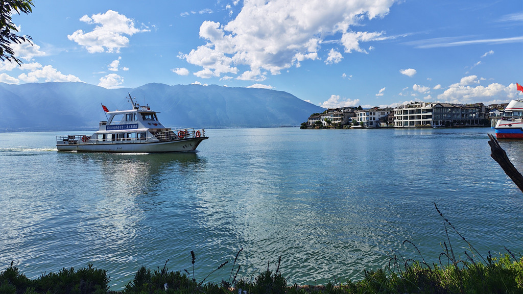 洱海在文笔村,计划在洱海停下来吃午饭,还没想好去哪吃,一下就驶过了文笔村,只好继续往前走,走到下一个挖色镇时停下来找餐馆,沿途的餐馆大部分都是大理白族餐馆,过了文笔村后沿途的景点开始密集起来,从海西过来的游客与海东过来的游客在双廊古镇汇合了,原先洱海的寂静好象也瞬间打破了,双廊古镇比较大,也是游洱海很多人都会前往的打卡点,街上的人群熙熙攘攘,很多人坐船去参观南诏风情岛,双廊古镇里面的白房子吸引了我,街上都是商业化的商店,跟昆明老街的商店很类似。