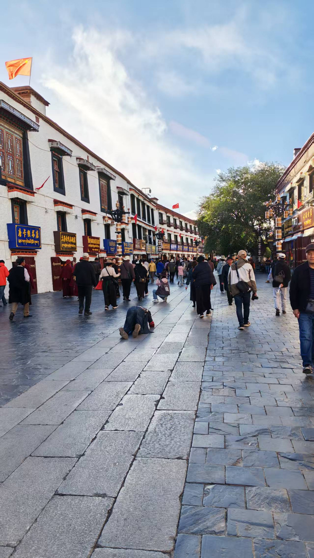 从罗布林卡出来后,前去出名的八廓街打卡,距今已经有1300多年的历史,在拉萨市的旧城区,我们在西藏博物馆门前的公交站坐公交前往,1元,公交很便宜,途经布达拉宫,第一次看见它的全貌,给它红白相间的颜色惊艳了。下了公交走了6-700米才找到八廓街,八廓街呈圆形,其名是藏语“帕廓街”的音译,意思是围绕大昭寺的街道,藏语中八廓是“环形朝拜”之意,这里是藏传佛教重要的转经道,每年有大量宗教活动举行。
