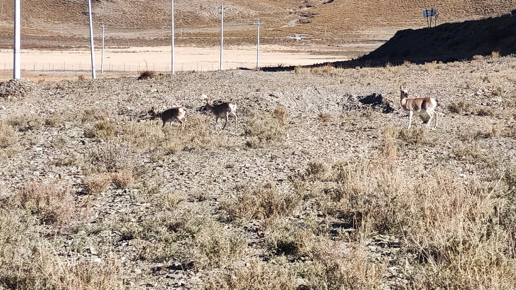 去羊湖的路就象羊肠小道一样,弯弯绕绕,真可以说是山路十八弯,翻山越岭,路上见到狐狸、野兔、藏羚羊,司机跟我们说见到这些野生动物,最好的爱护就是不要去喂它们。