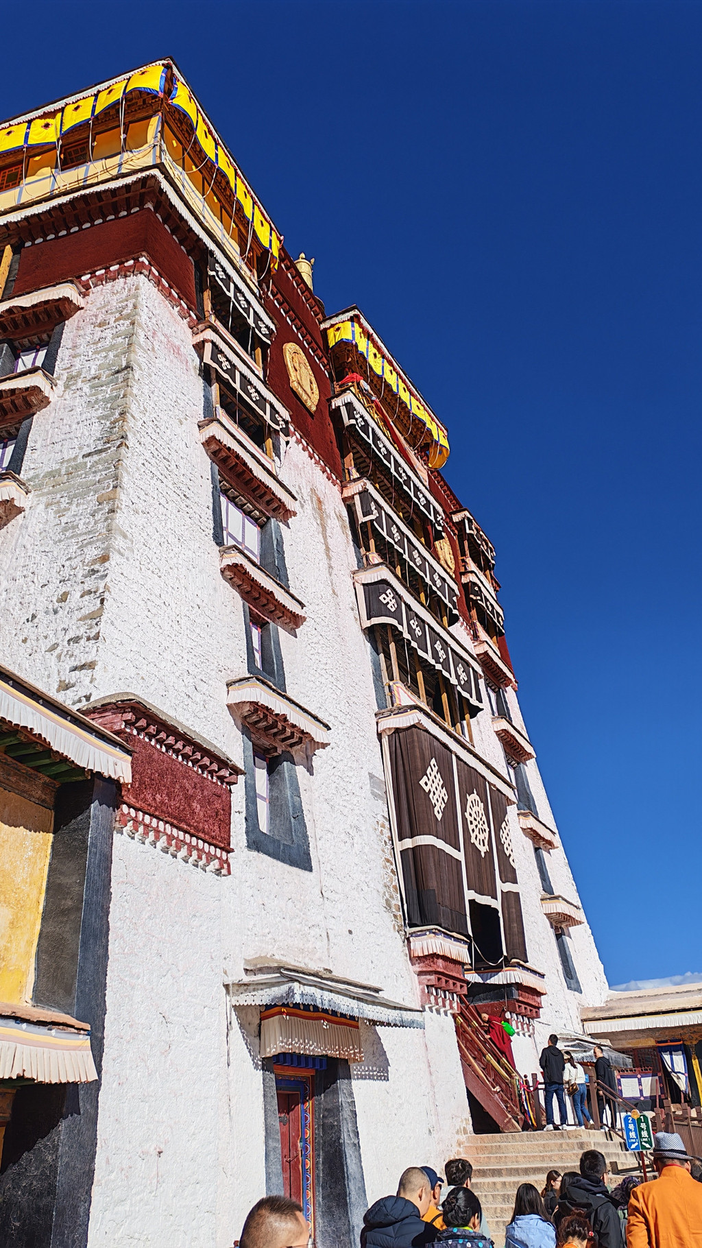 参观完红宫部分,也意味着已经参观完整个布达拉宫了,整个参观时间2-3小时,导游也在这里跟我们说再见了,接下来就是可以自由参观了。下台阶在帮队友拍照时,遇到了一群广州来的叔叔阿姨,有一位叔叔特别热情,看年龄应该有70多岁了,叫队友怎么松驰法拍照,叫我们可以找视频老师,不会的就可以去学,还把他在桂林拍了几张不同角度的美女照片给我们看,详细讲了构图,光线,特别热心(终于明白旅游的人为什么心态特别好,因为碰到的都是高兴的事)。参观布达拉宫,不仅是一次视觉的盛宴,更是一次心灵的洗礼,它让我感受到了藏族文化的博大精深,也让我对历史和信仰有了更深刻的理解。