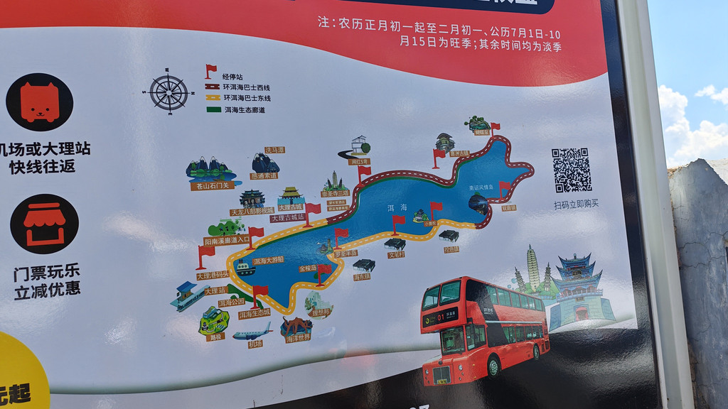 中午时分,整个罗荃半岛只有三三两两的游客,我们拍了一张环岛图,对整个洱海的景点有了更清晰的了解。