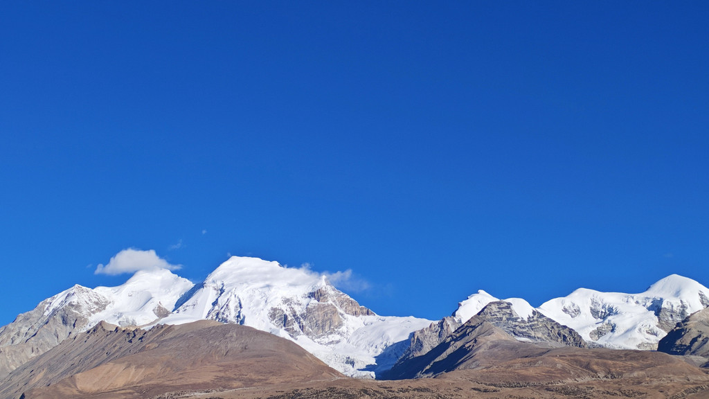 导游看我们购买的少,一路上几乎没有任何介绍,只是抵达景点时跟我们说停留多长时间。一出拉萨城,上高速没多久,海拔就由3000多米一路上升到4000多米,第一景点念青唐古拉观景台,第一次看到雪山,又兴奋又激动。