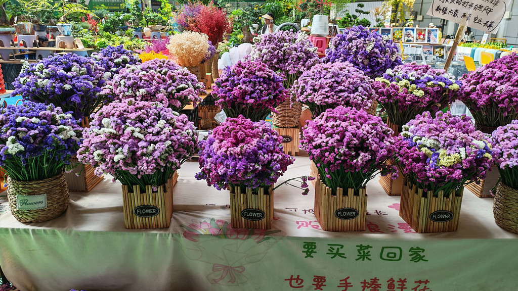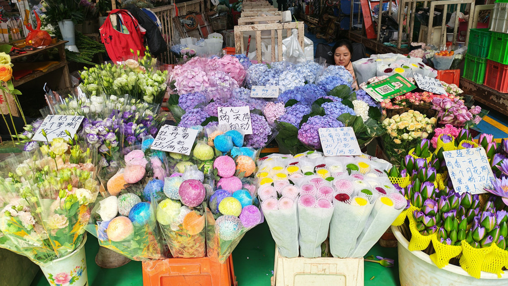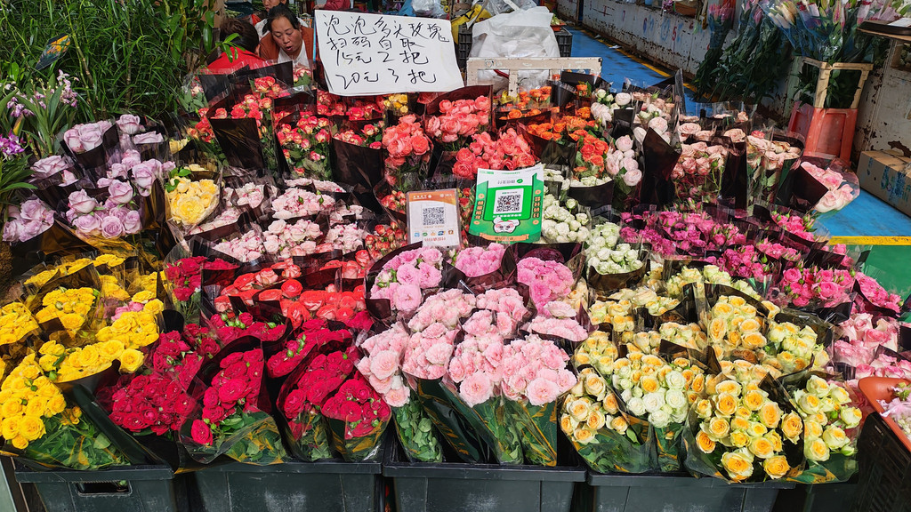 从西山下来后我们前往亚洲最大的花卉市场-南斗花卉交易市场,有7个场馆,我们逛了2号馆,一楼主要是一些常见的花束,二楼一些小商品,白天人流不多,主要是散客为主,游客可以购买花环、花束,一束鲜花的价格15-30元不等,跟广东的价格差不多,听说夜间是批发商的天下,每天晚上8:30到凌晨进行大宗交易,数万人参与竞拍,场景极具烟火气。中午在周边的餐馆解决了,一个菌小满的炒饭店排了长队,也去凑了热闹,18元一份松茸炒饭,味道很香。