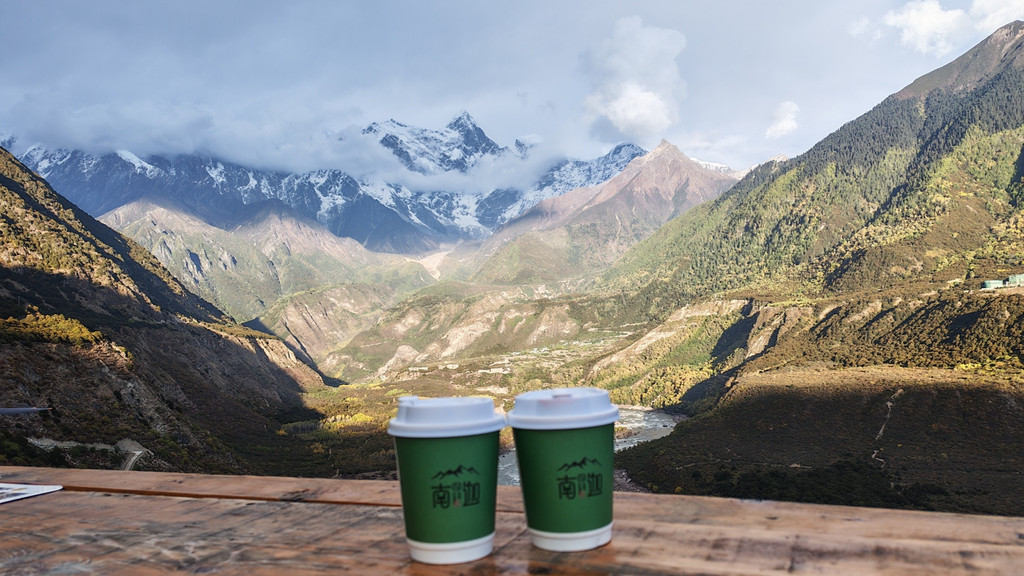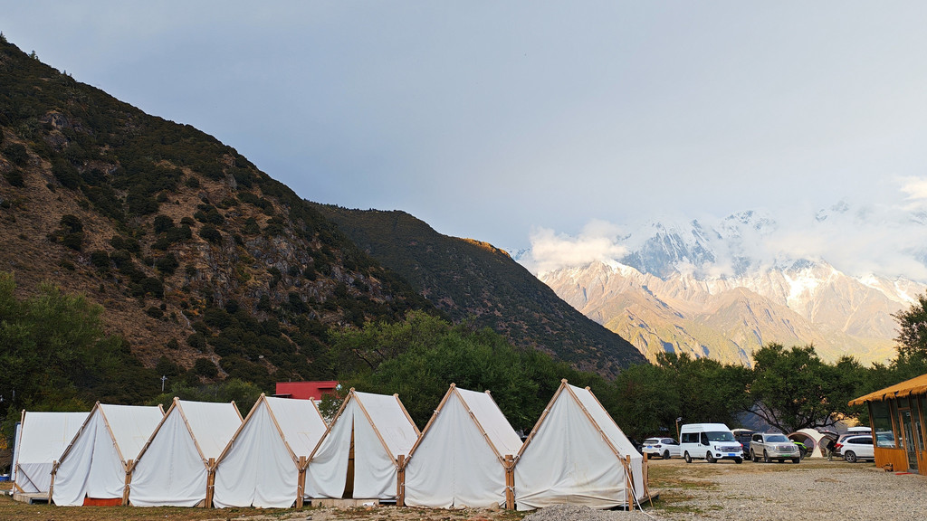 店长还推荐了附近用餐比较好的店和观看日落金山的最佳位置,最后我们选择去一个咖啡店,好的位置已经全部被人占了,旁边的空地上有很多露营的帐篷,我们买了两杯咖啡在那里等日落,结果快到日落时分,6点多之后,一大片云将山峰遮的严严实实,今天兴致勃勃的从拉萨赶来看日落金山,没想到最后一刻天空不作美,还真是十人九不遇,要带点遗憾下次再来了。出来的时候没有穿冲锋衣,天一黑加上山里比较冷,冻的瑟瑟发抖。