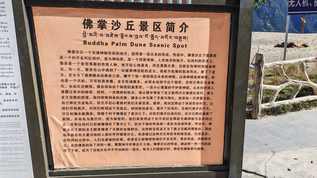 经过佛掌沙丘,下去看了一下,沙丘不算很大,里面也有一些玩的项目,骑骆驼要150元,比鸣沙山月牙泉贵了差不多一倍,性价比不高,我们在门口拍了几张照片,没有进去参观,其他路过的景点都没再下来参观,一路驱车前往索松村的酒店,生怕赶不上日落。