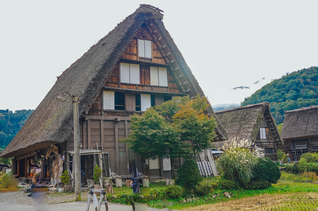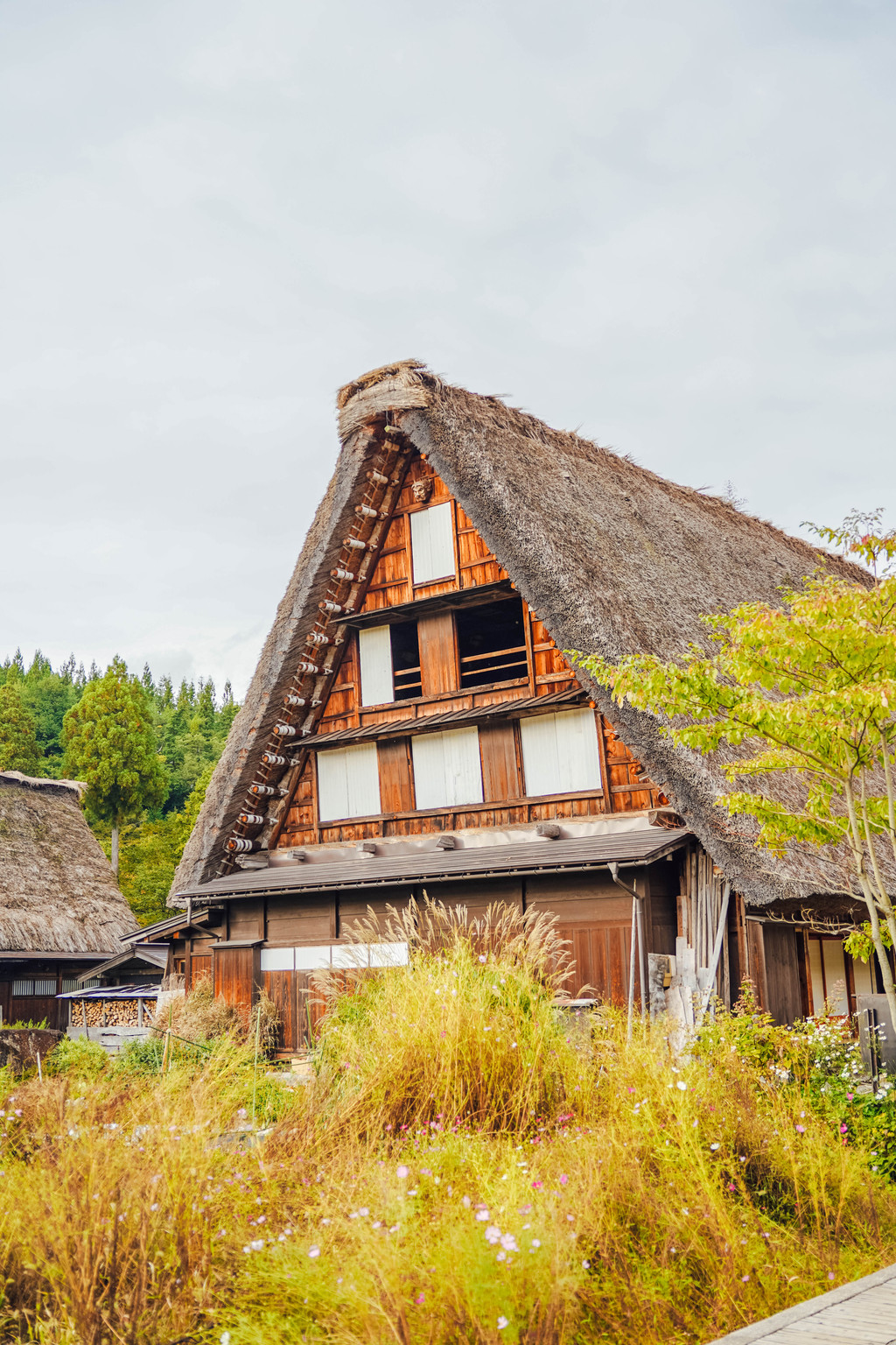 这里被列为世界文化遗产,以 “合掌造”原生态建筑而闻名,有着三百多年的历史,人字型的屋顶如同双手合十,故被称为“合掌”。据说建造时没有用到一颗钉子,但依旧能抗住百年风雨,坚固如初,不得不佩服建造者的智慧。
