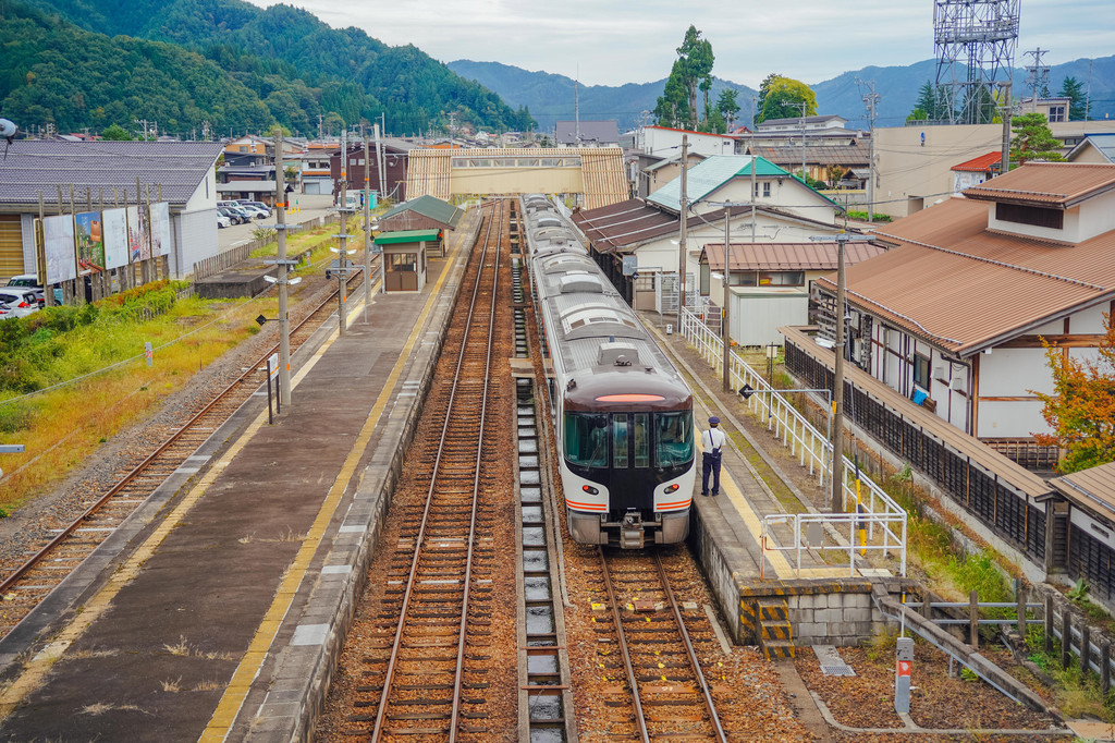 飞驒古川站并不大,从高山乘车非常方便。到达后在出站不远处的天桥上,就可以打卡到电影里同款车站场景。