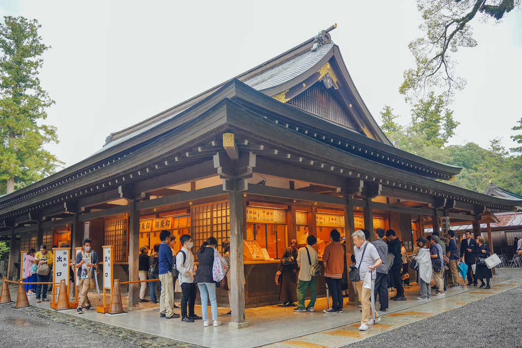 游览当天虽然是阴雨天,仍然有许多当地虔诚的拜访者,可见其在日本的崇高地位。这里的御朱印也独具收藏价值,临走前可以带上一份明信片或伴手礼,为自己也留一份纪念。