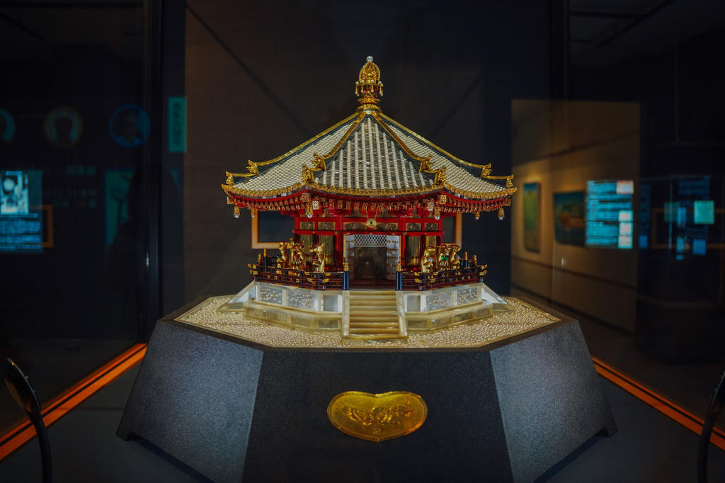 这件名为梦殿的工艺品,是纪念珍珠养殖100周年时制作完成,精巧华丽,如同仙居宝阁,梦幻耀眼。