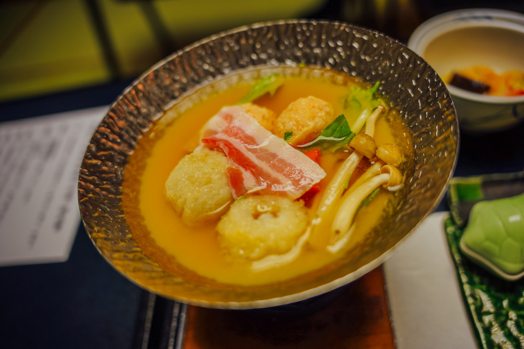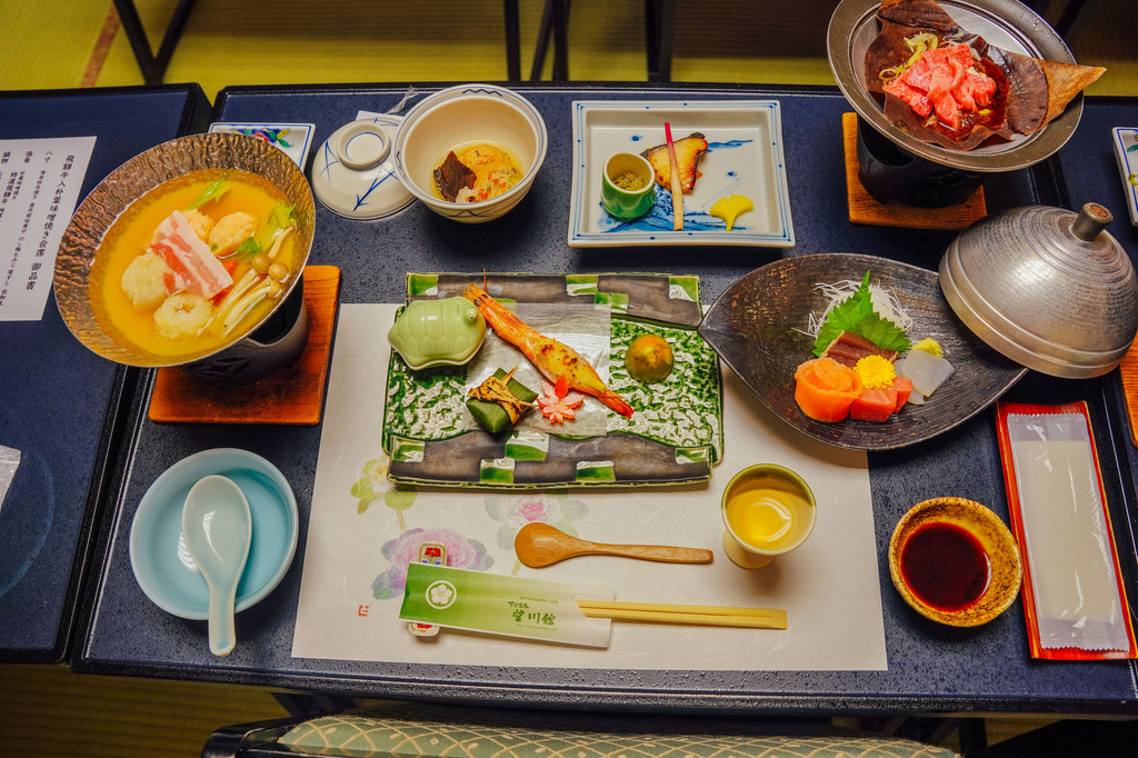 会席料理是日本代表性的宴请用料理,不同季节有不同的代表性菜谱,核心是让客人喝酒聊天,慢慢品尝菜品,所以上菜顺序、食材摆放也有讲究,充满仪式感。