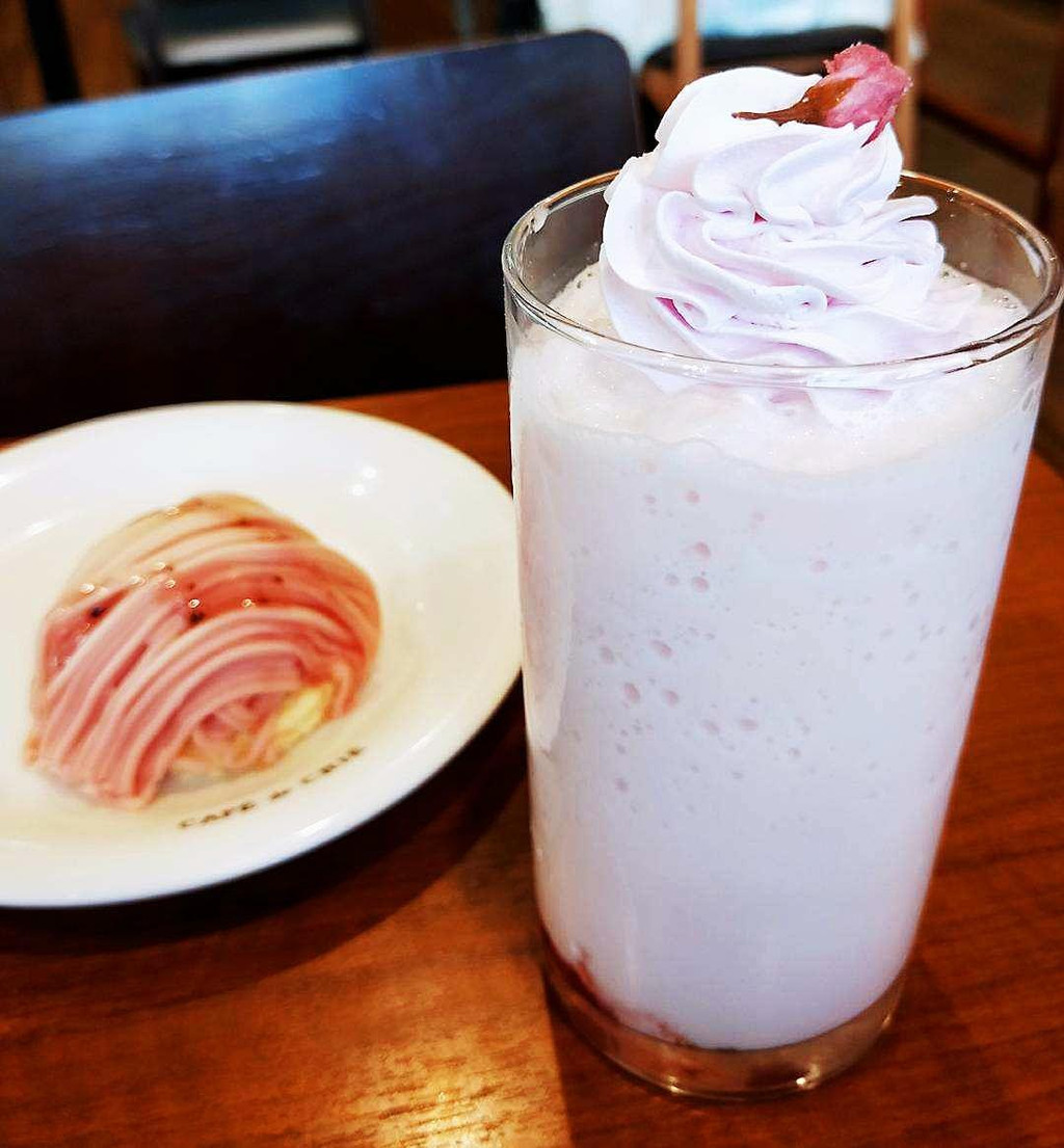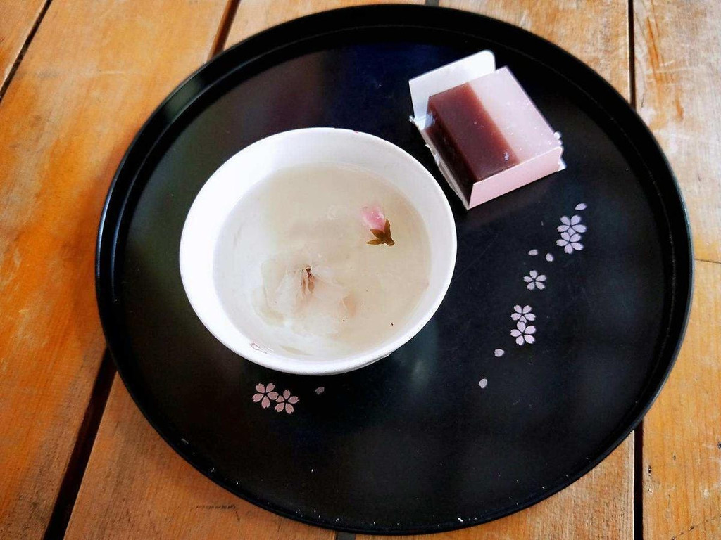 樱花季时也一定要品尝一下应季的樱花饮品和点心,粉粉红红甜甜美美的。同样甜美的还有身着华丽和服的日本女子,其质感和做工远非一般游客打卡留念的和服可比。