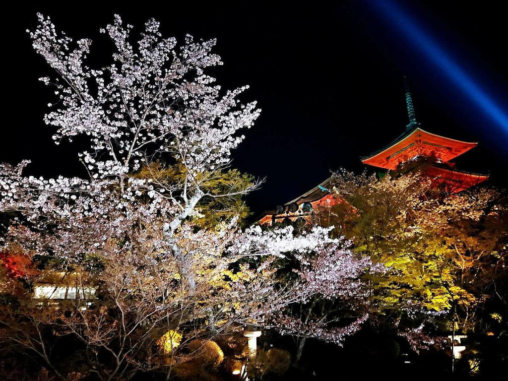 另外京都最有名的清水寺是一定要去的,建议去的时间放在下午三四点左右,光线好视野好,拍照也好看,下山时就差不多天黑了,清水寺赏夜樱也是一绝。