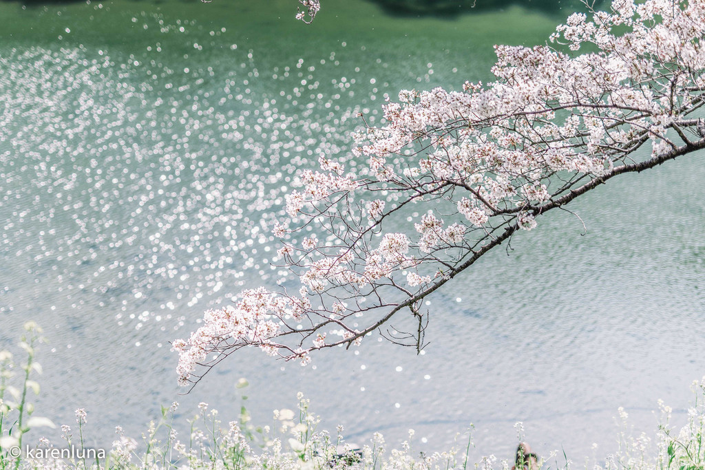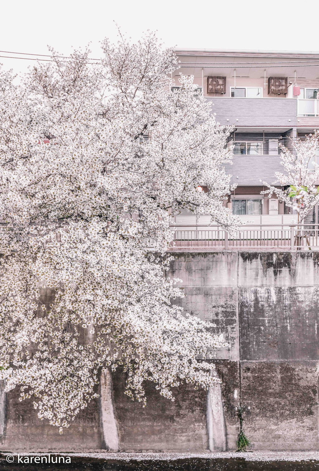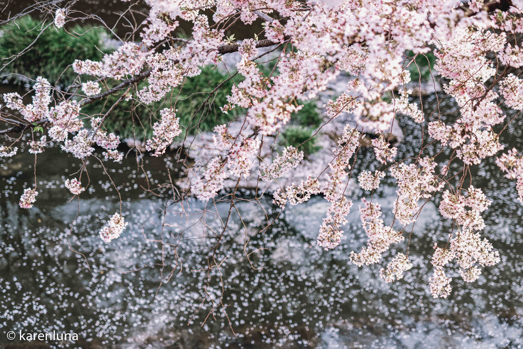 与目黑川相似的是,这里同样是河道两侧种植了超美的樱花树,待到樱花满开时,枝头延伸到水面上,当一阵风吹过,淡粉色的花瓣雨散落到河水中慢慢流淌着,那个景色真心美到窒息。