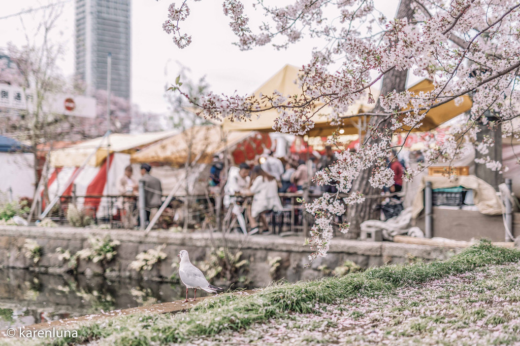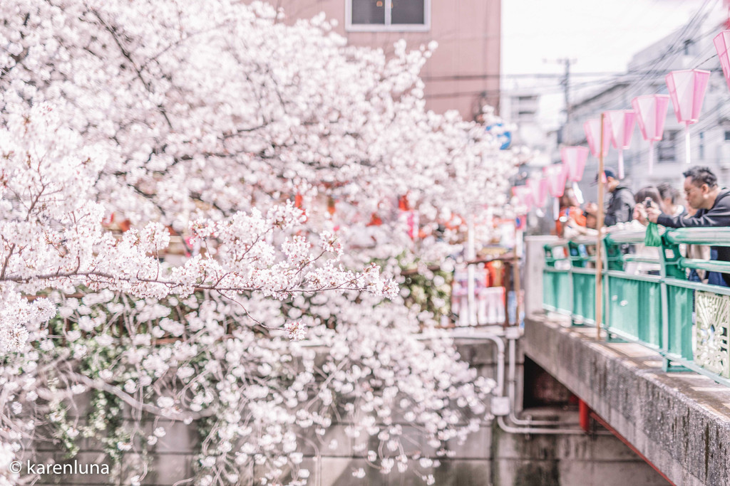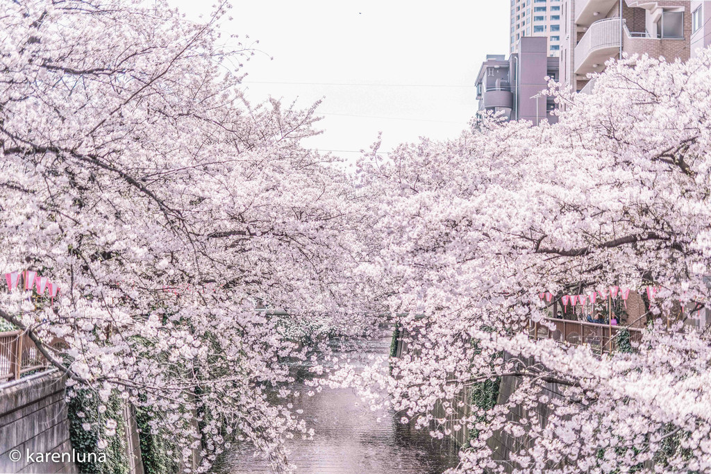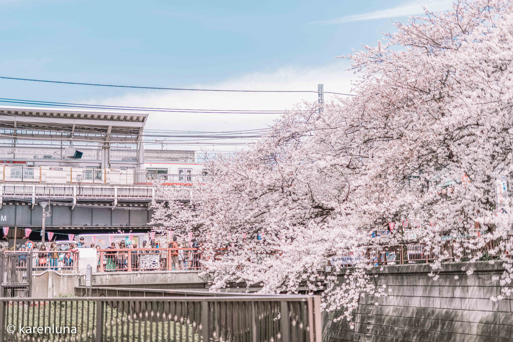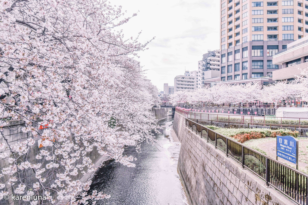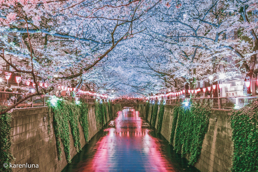 很多攻略都把目黑川放在东京赏樱胜地的榜首。果然是名不虚传!!!800+株樱花树沿着河道蜿蜒曲折,开满枝头的樱花延伸到河面上,偶有金色的阳光透着淡粉色的花瓣洒在面容上,那唯美的画面别提多梦幻了!而且不管白天还是夜晚,这里都是那么的妖娆绚烂。