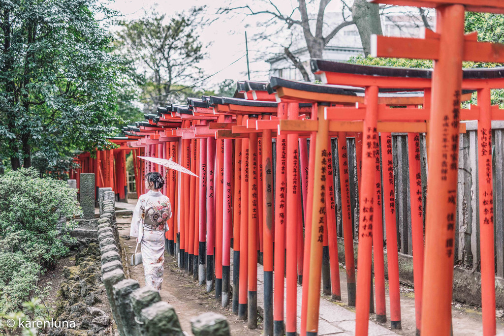 拍摄和服写真,自然要选一些具有 日本 特色的建筑做背景才更有代入感,所以寺庙、日式庭院、鸟居、町屋,这些最具 日本 代表性符号的古建最为合适,而在 东京 就藏着一个有着迷你版 京都 伏见稻荷 大社 千本鸟居的神社:根津神社。
