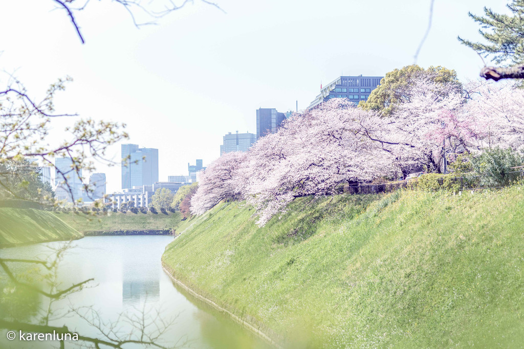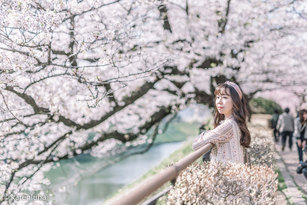 因为北之丸的名声过大。所以游客也是更多,相反,让这附近的千鸟渊公园安静了许多。沿河大道和堤坝上种植了170棵樱花树的千鸟渊公园,满开的时候形成了一条粉色隧道,走在其中真是有种说不出的浪漫。虽然我去的时候樱花已经开始飘落,树上也长出了很多绿芽,还是可以想想到满开的时候是由多么美丽。当然最最重要的是这里的游客居然这么少,人像真是可以想怎么拍就怎么拍。